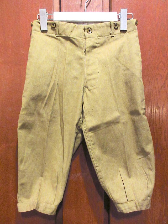 ◆商品名◆ ~1930's DEADSTOCK キッズ ドーナツボタン コットン ジョッパーズパンツ 実寸W65cm ◆サイズ◆ ウエスト:約65cm わたり幅:約27cm 裾幅:約13cm 股上:約24cm 股下:約36cm 着丈:約57cm ※計測箇所によって多少異なりますのでだいたいの目安としてお考えください。 ◆状態◆ 1箇所保管時についたと思われる汚れ ※ダメージ、汚れが気になる方、神経質の方はご遠慮ください。 ◆商品情報◆ 素材:コットン 色 :マスタード 【詳細】 ボタンフライ、ドーナツボタン、裾にジャスター付き