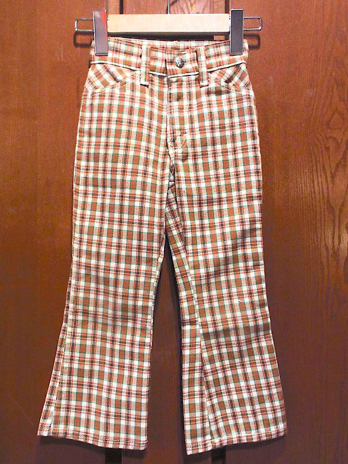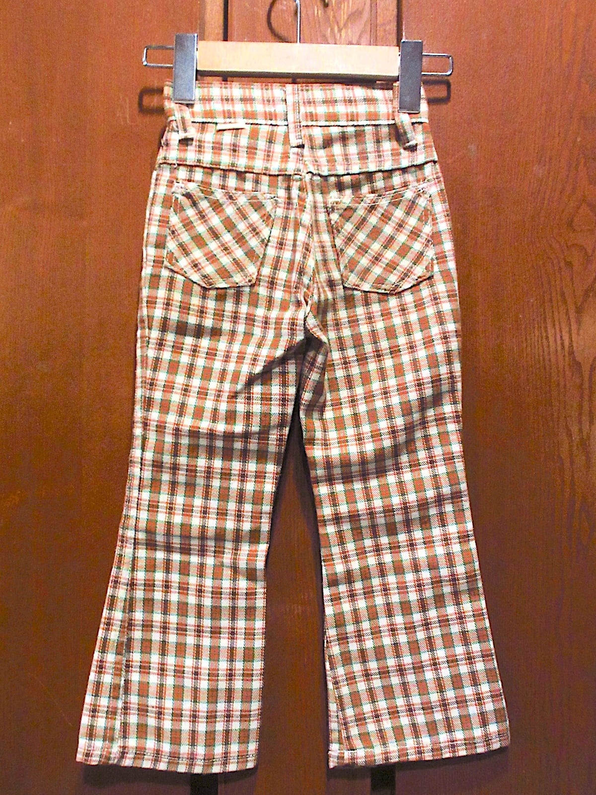 1970's MANN キッズ チェック フレアパンツ 実寸W46cm