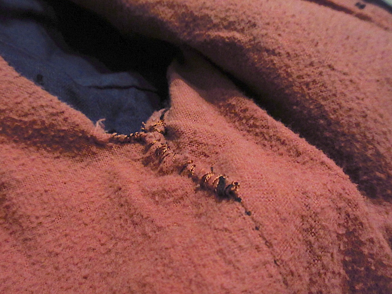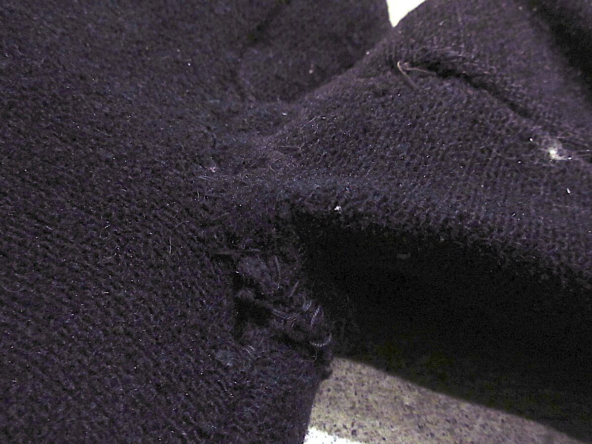 ボタン1個欠損、タグ欠損、襟、両脇にリペア、全体的に小穴、スレ、焼け、毛羽立ち