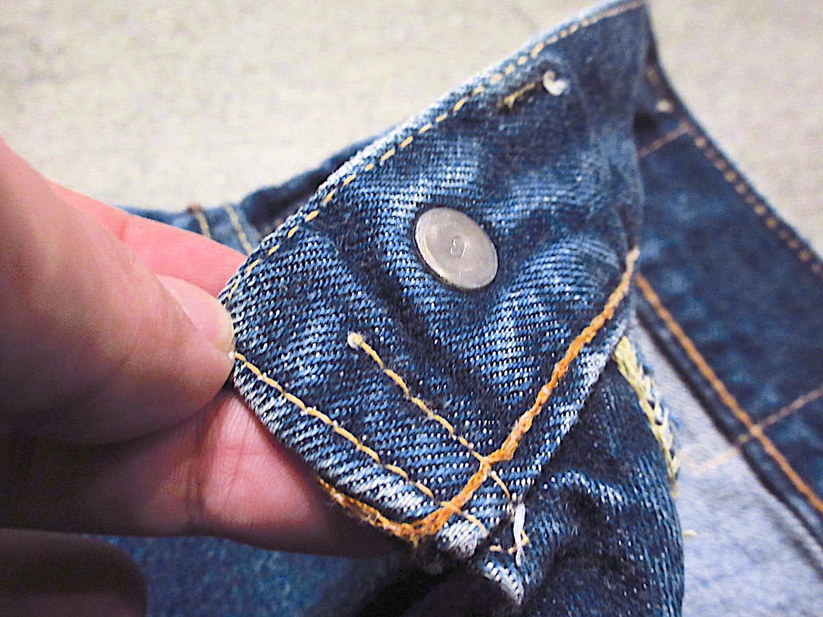 耳付き、ボタン裏6、Vステッチ、ジッパーフライ、42TALONジッパー、MADE IN U.S.A.