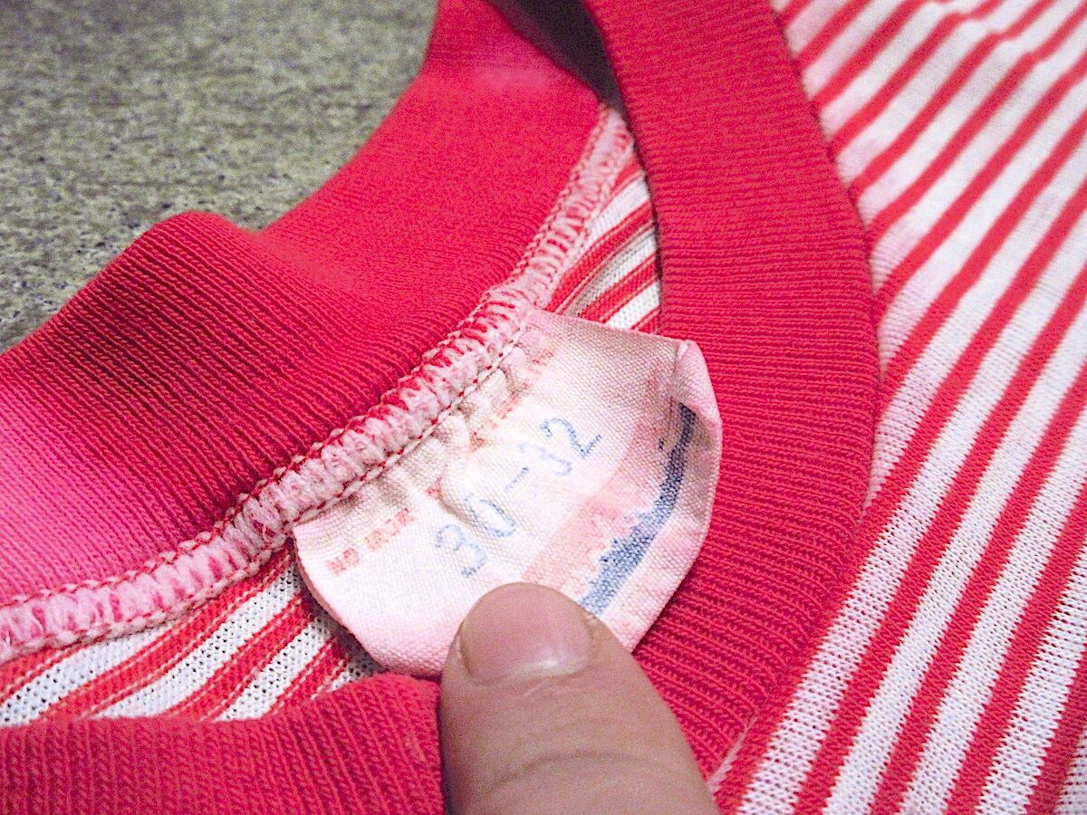 1970's キッズ ボーダー 半袖Tシャツ 白×赤 size 30-32