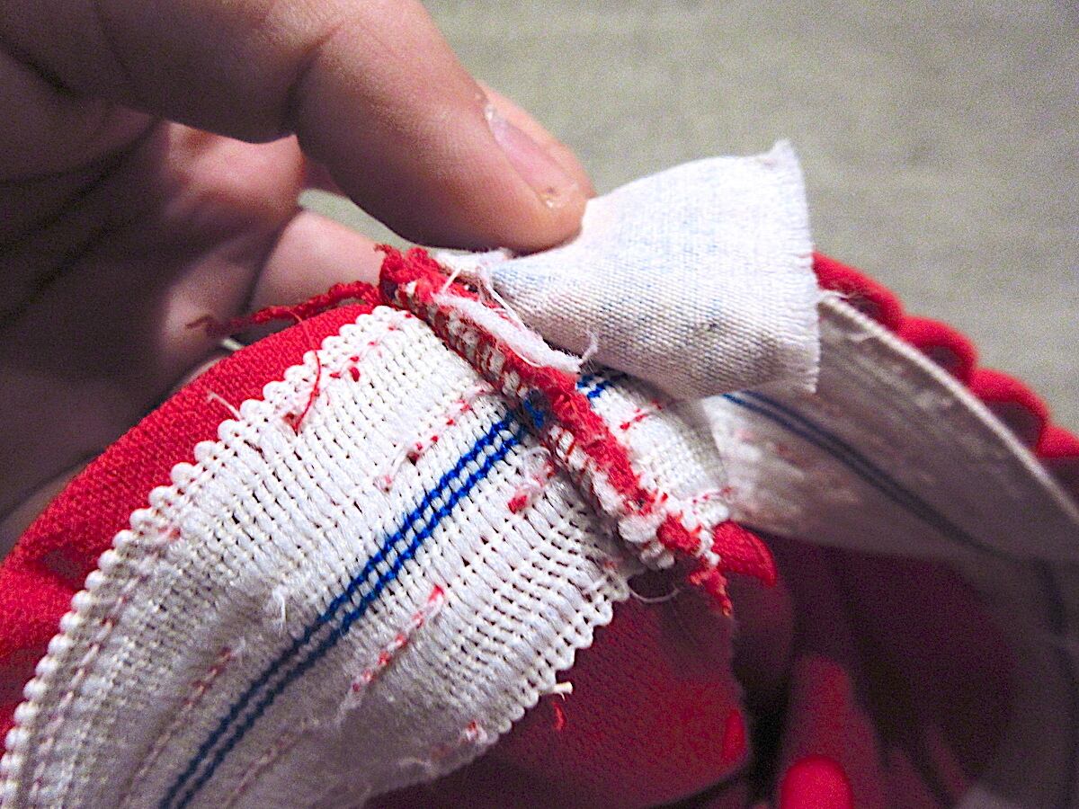 タグ、ウエストステッチにほつれ、プリント割れ、着用感