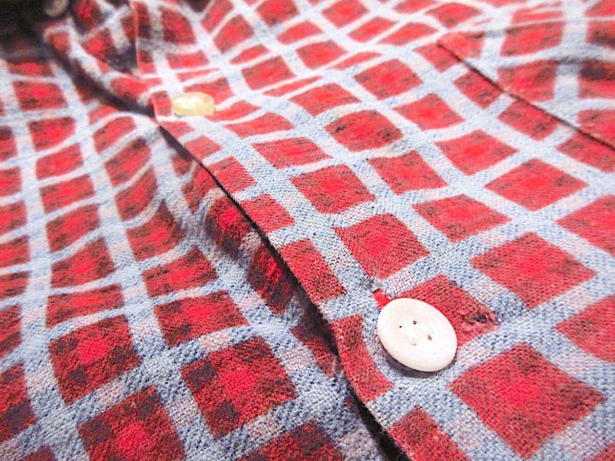 1960's キッズ チェック プリントネル 長袖ループカラーシャツ size 8