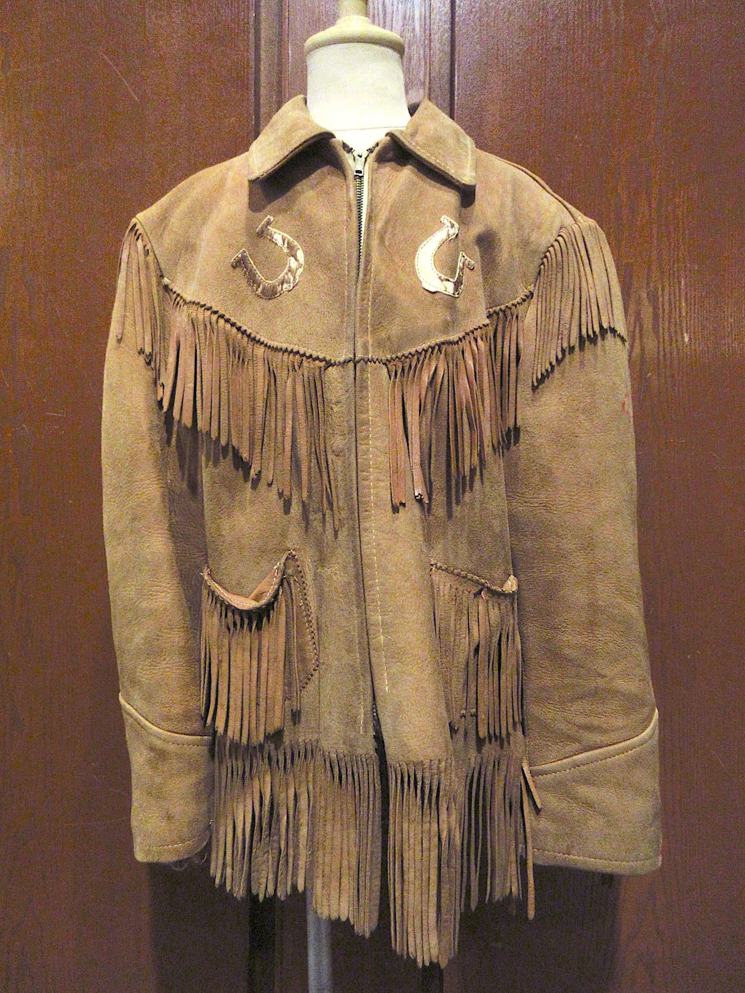 ビンテージ50's●キッズスウェードフリンジ付きウエスタンジャケット茶●260119m2-k-jkホースシューヌバックアウター子ども服