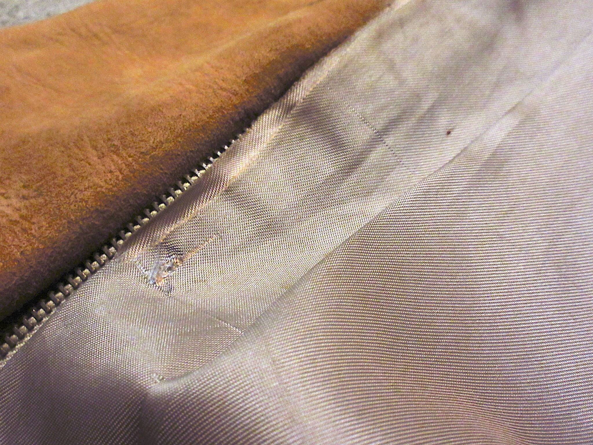 裏地にシミ、ダメージ、ホースシュー部分の毛に抜け、所々にシミ、汚れ、着用感 ※ダメージ、汚れが気になる方、神経質の方はご遠慮ください。