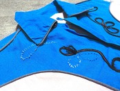 ツートン、ループカラー、刺繍入り、猫目ボタン