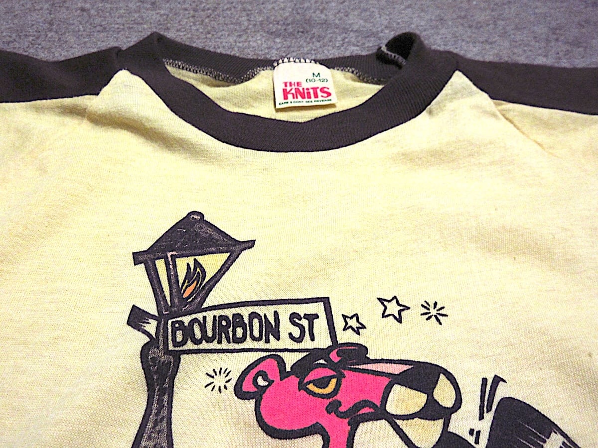 1970's DEADSTOCK キッズ ピンクパンサー ラグランプリントTシャツ size M 10-12