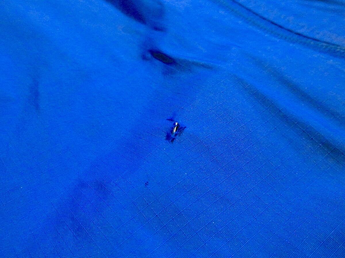 フロントに穴、所々にスレ、毛羽立ち、着用感