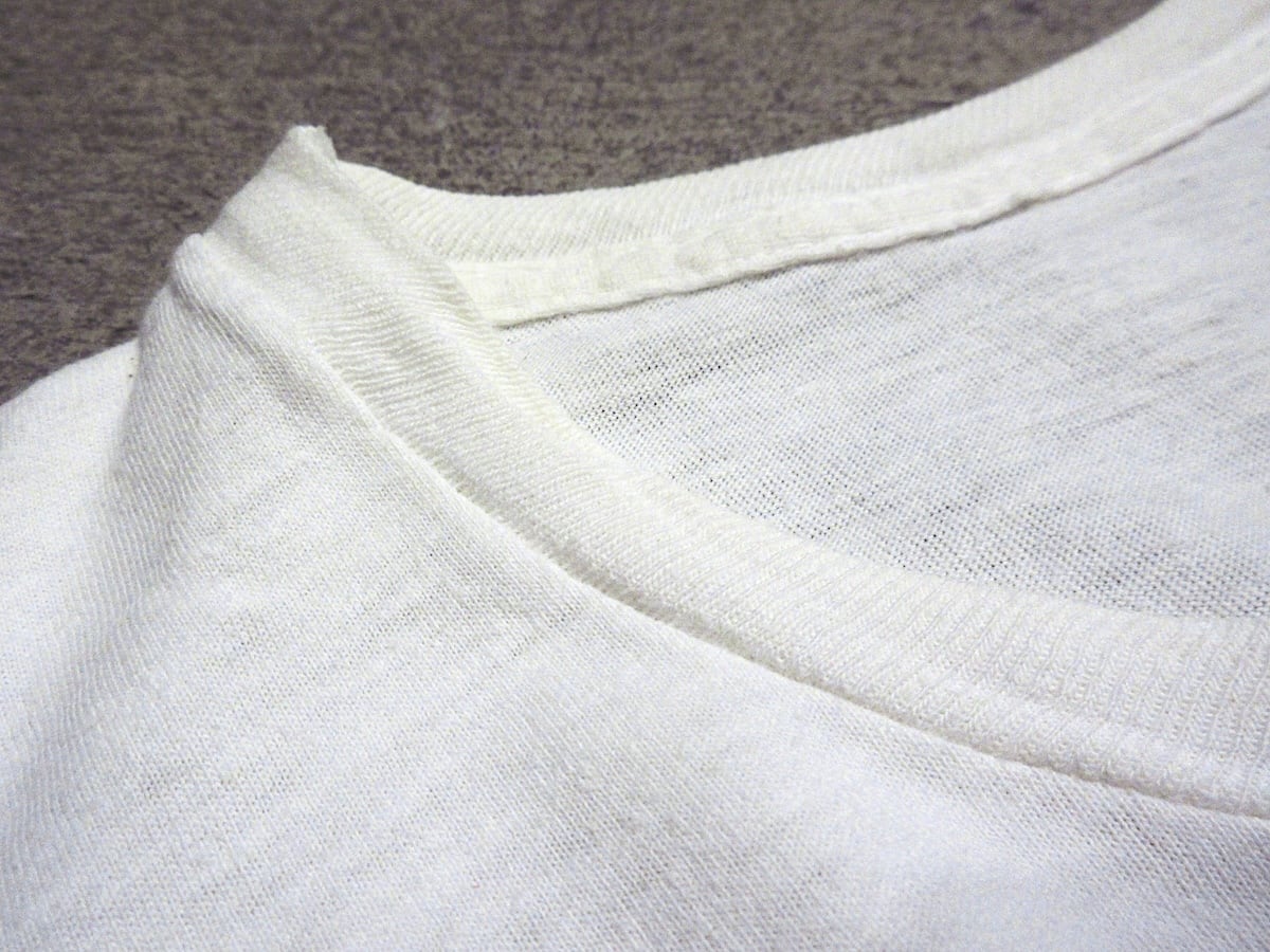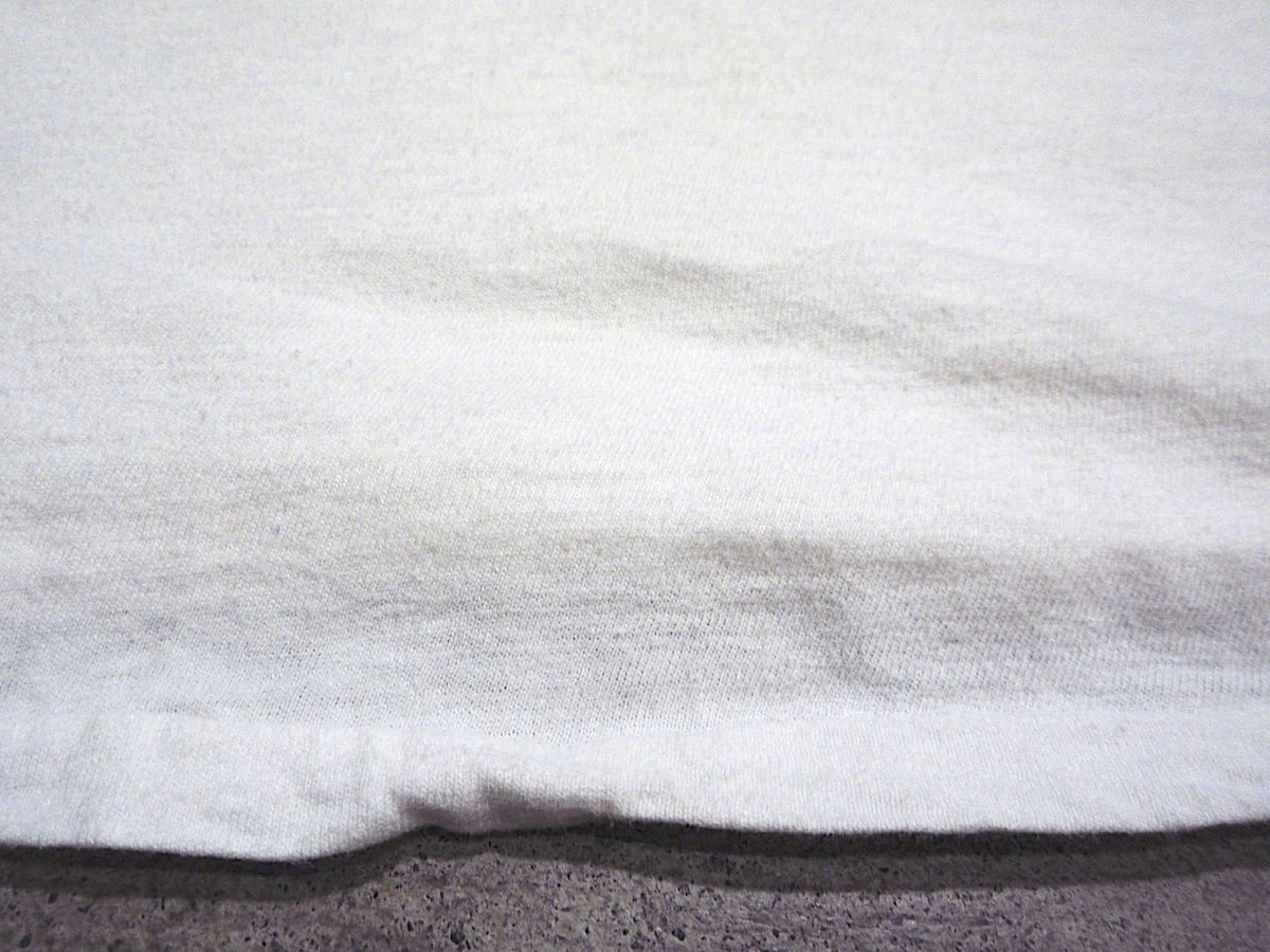 染み込みプリント、裾、袖先シングルステッチ