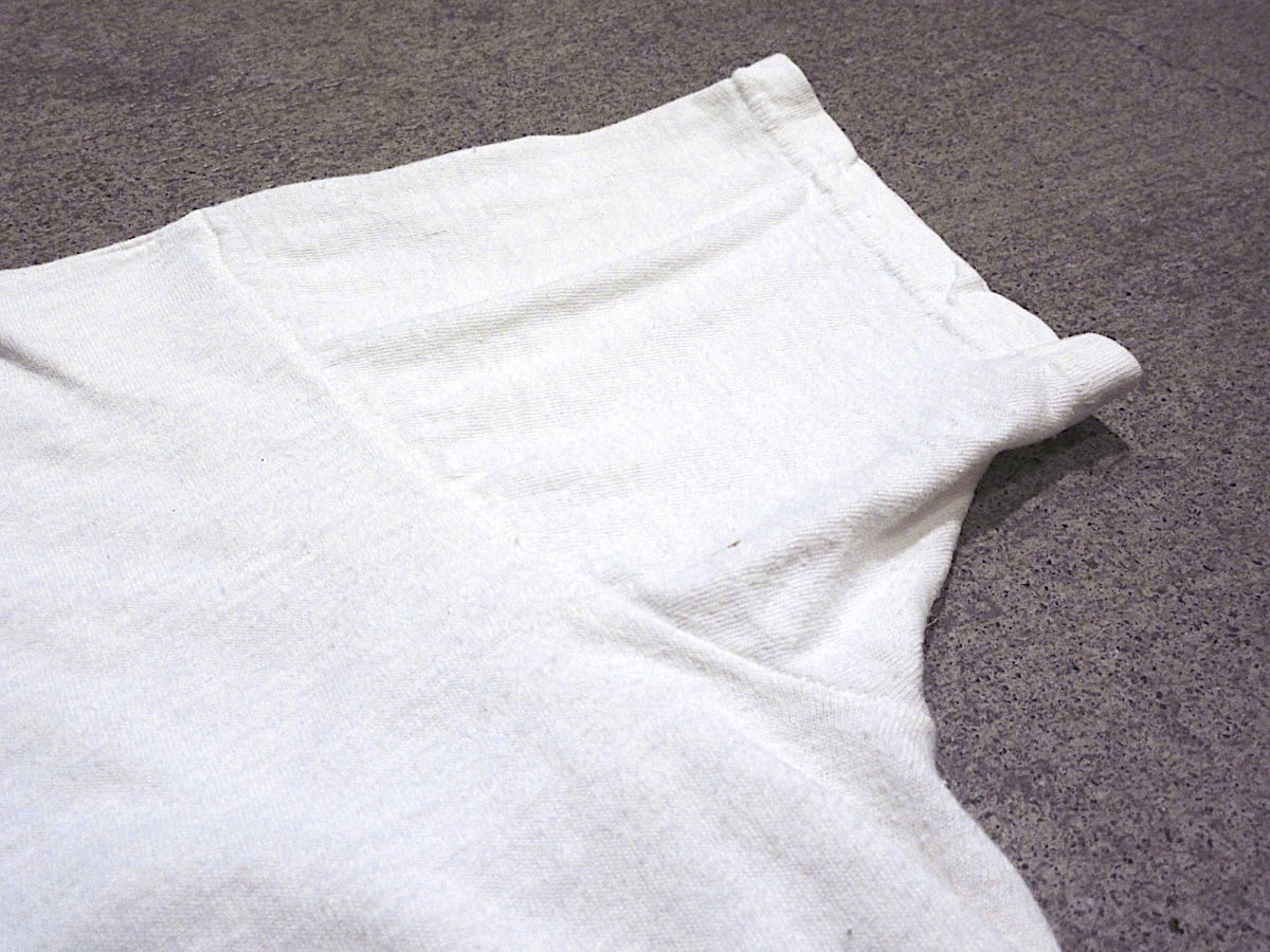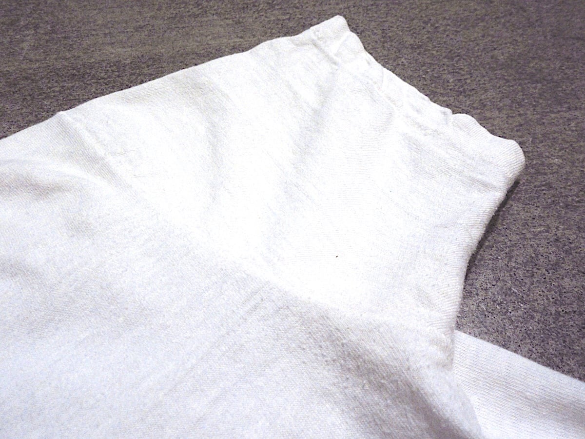 生地にヤレ、伸び、所々にシミ、着用感