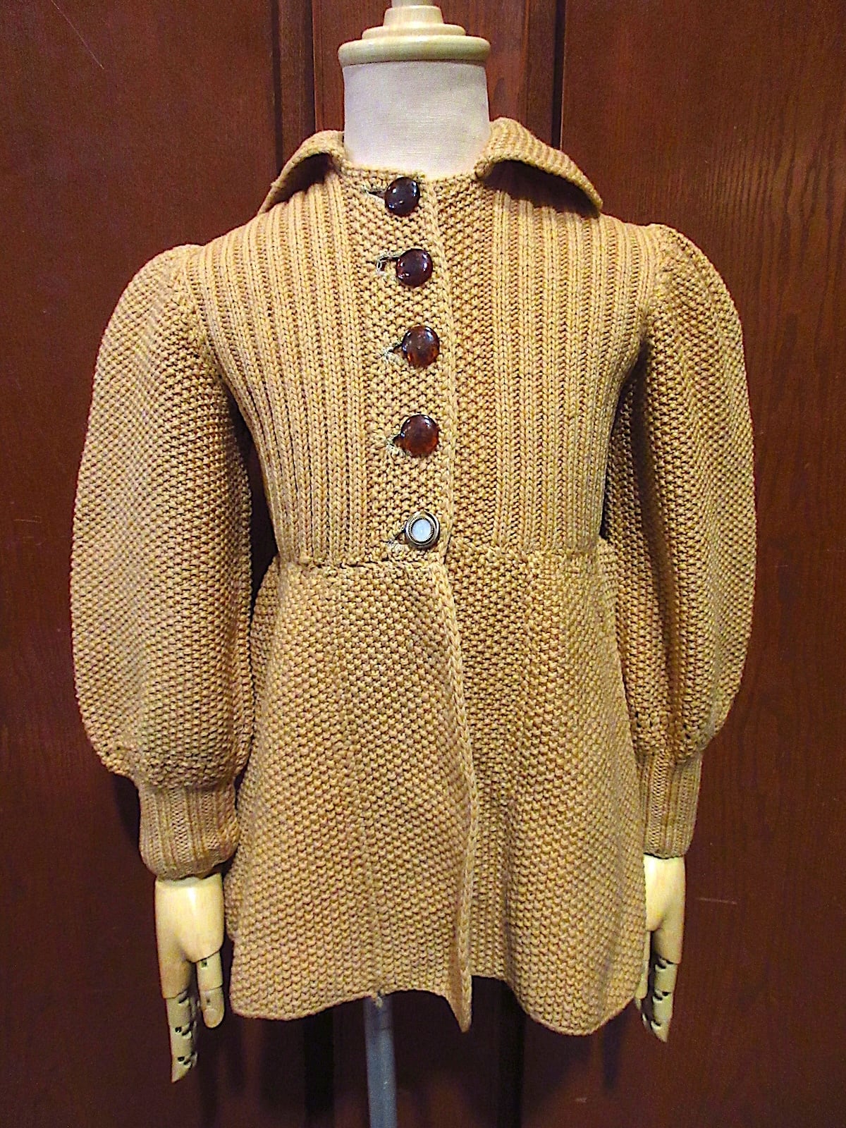 1930's~1940's キッズ 襟付き ウールニット 長袖ワンピース