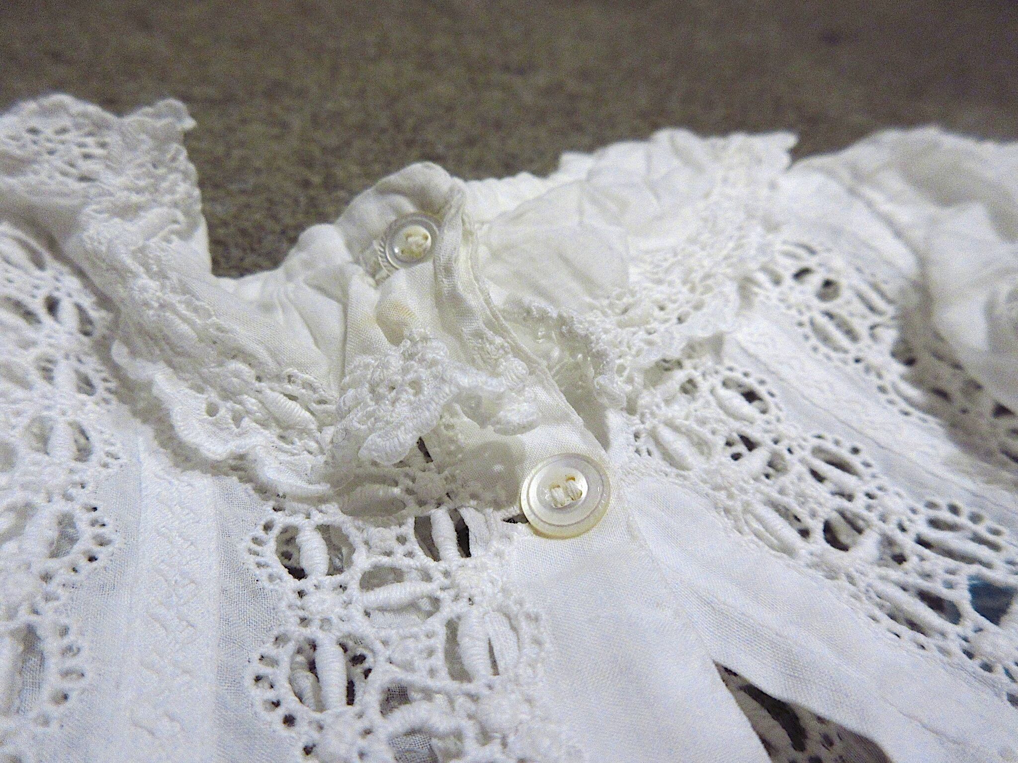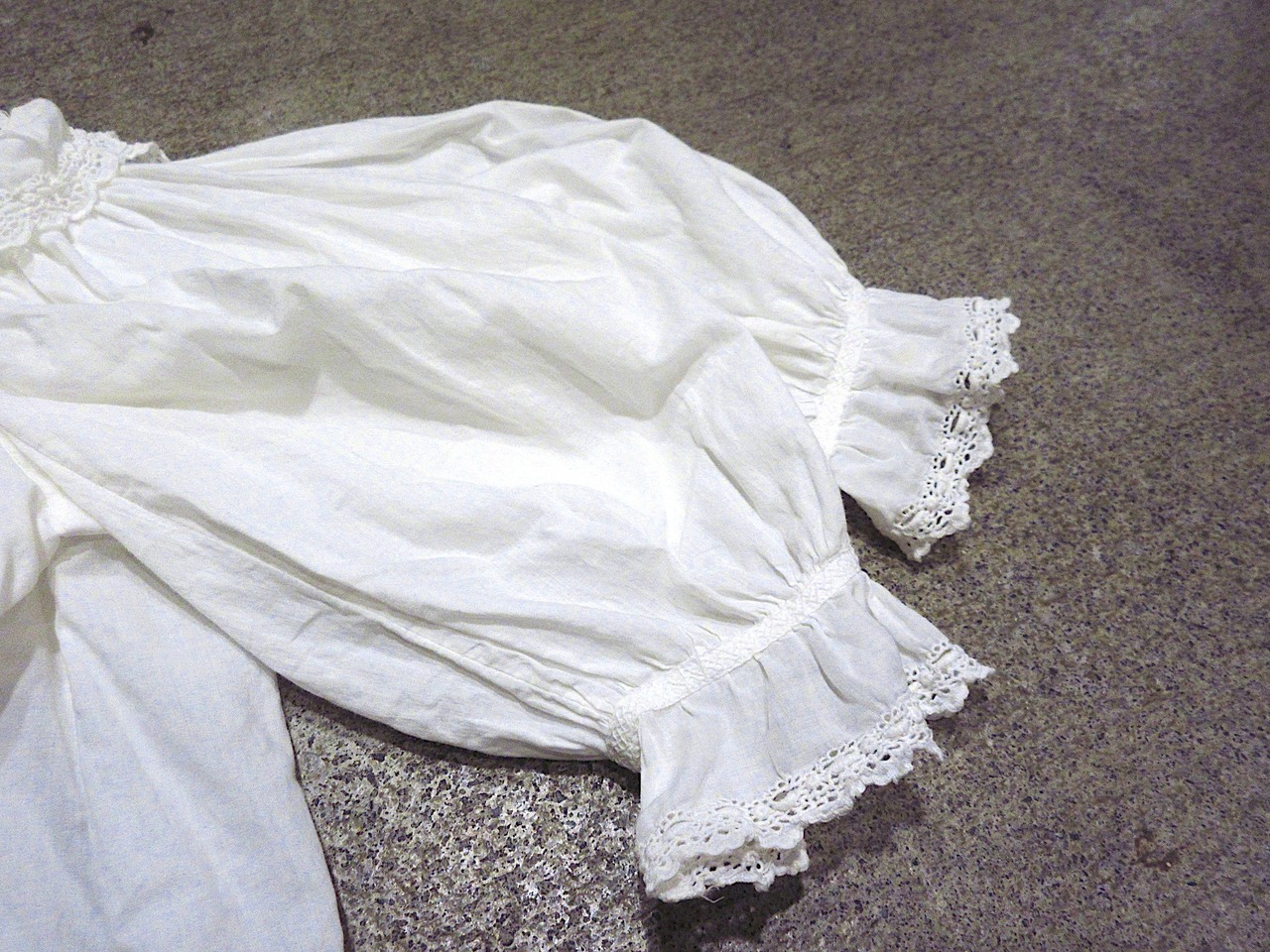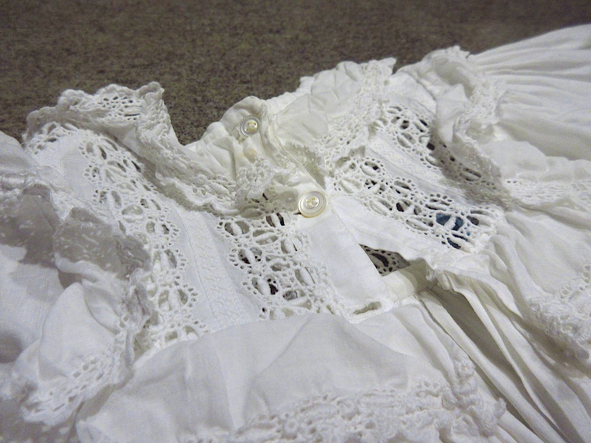 ~1910's キッズ レース×ギャザー入り 半袖ワンピース 白