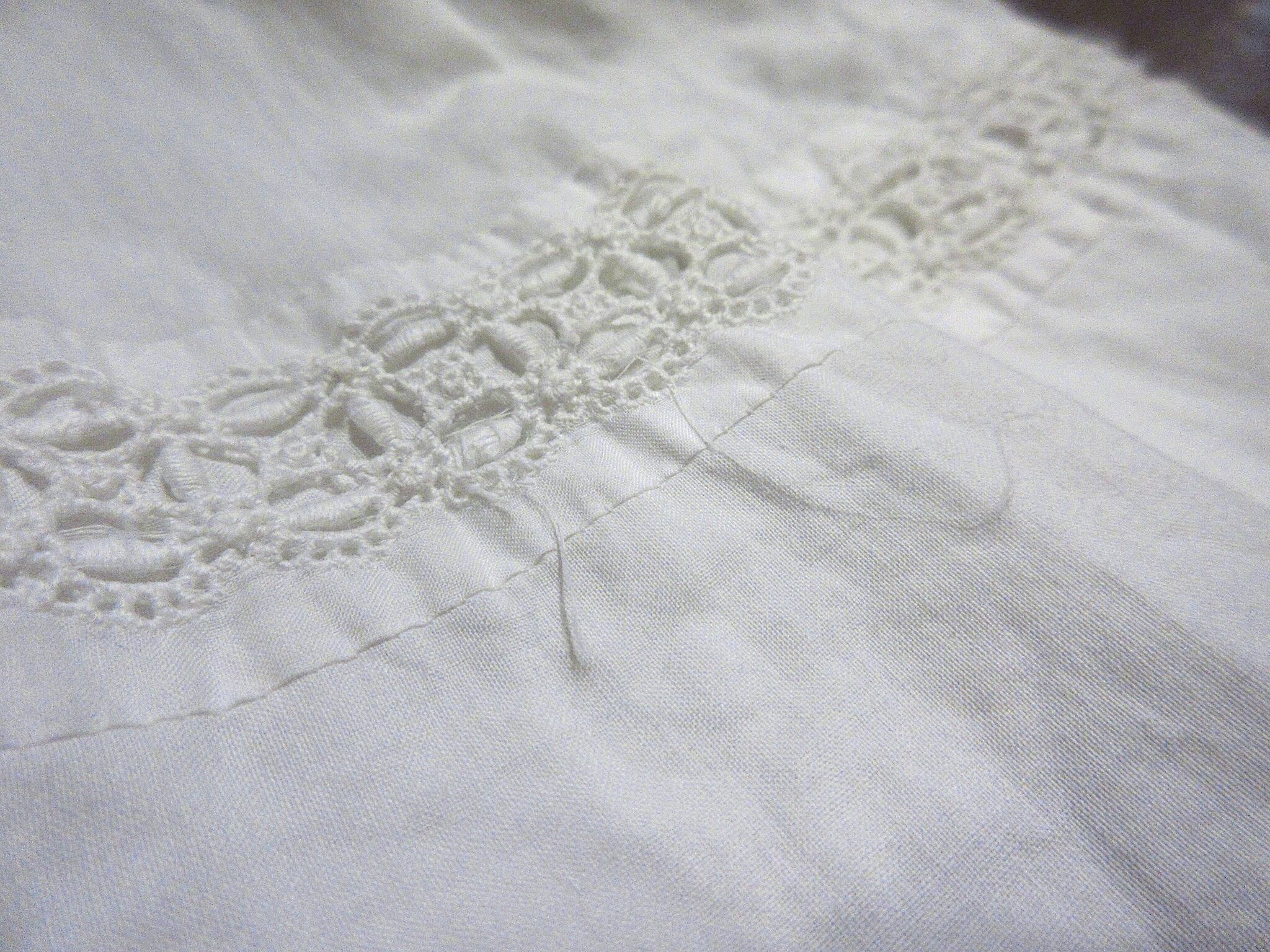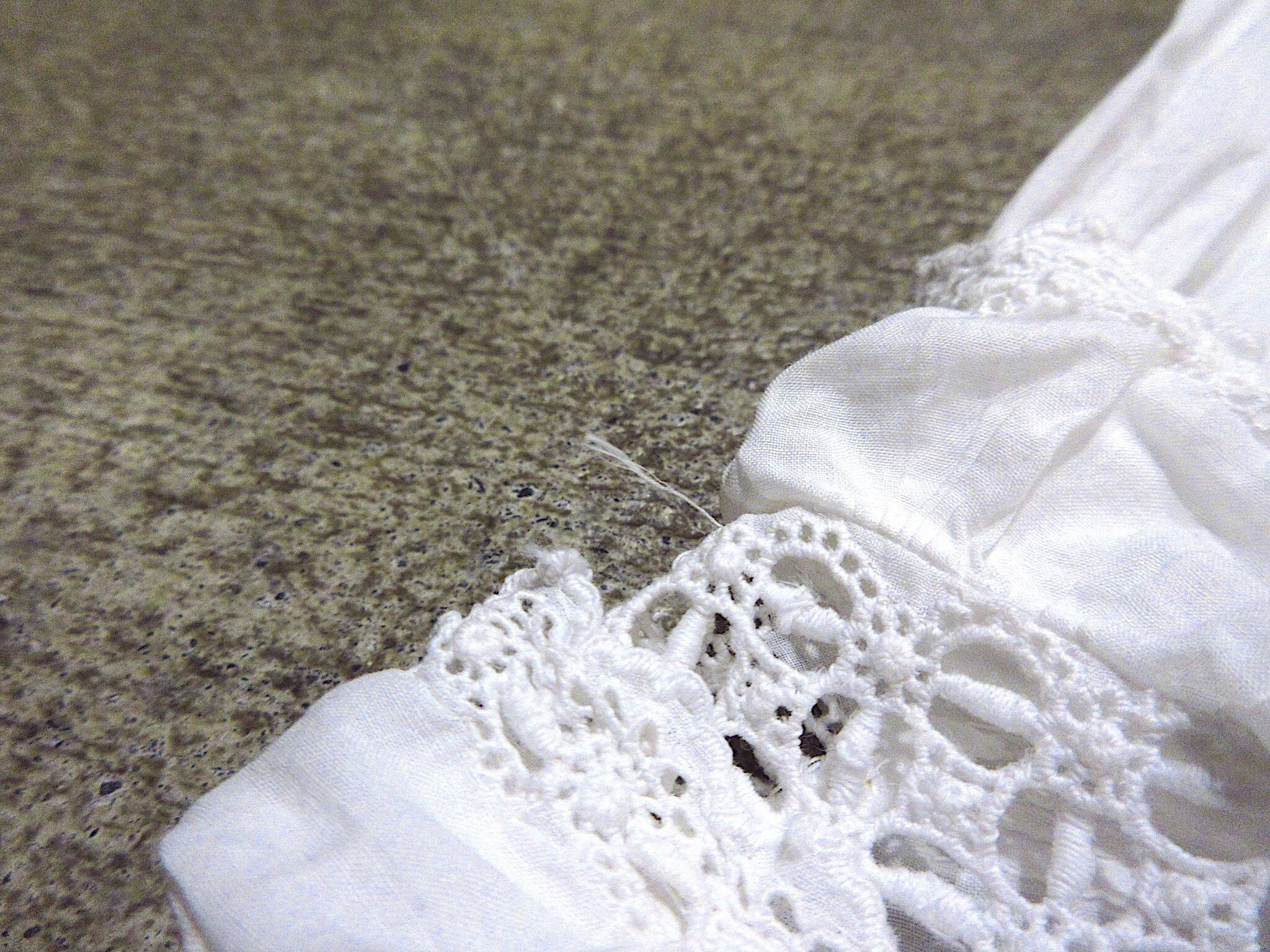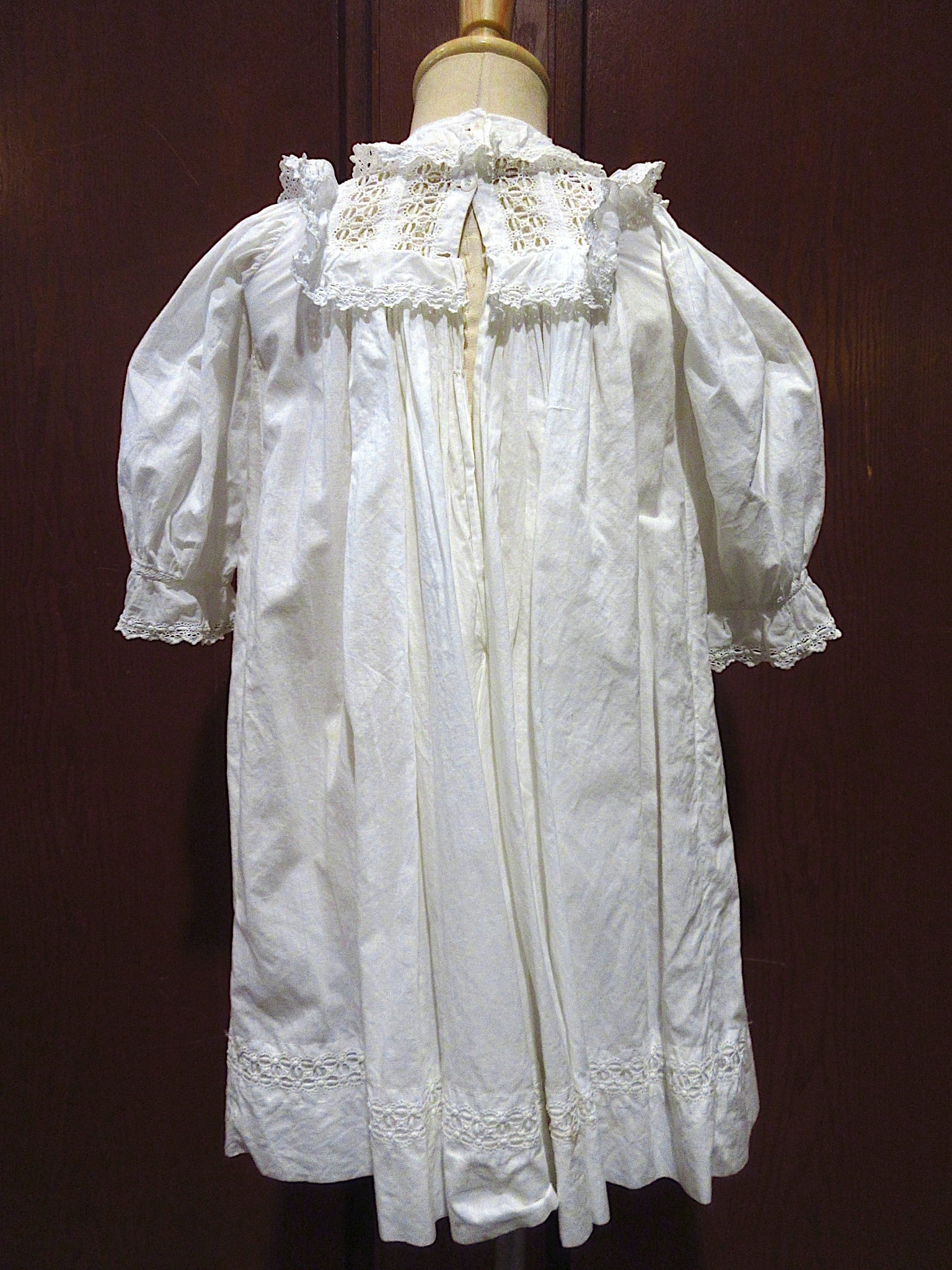 ~1910's キッズ レース×ギャザー入り 半袖ワンピース 白