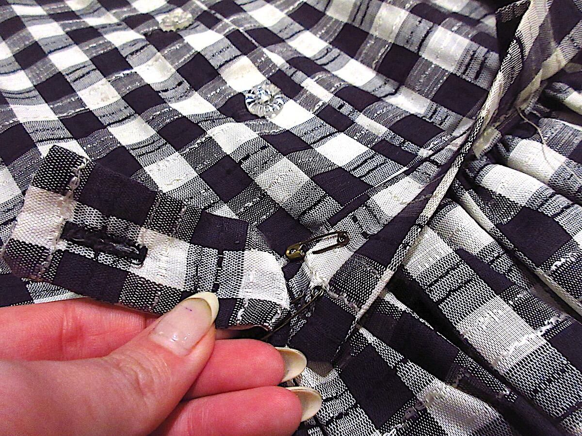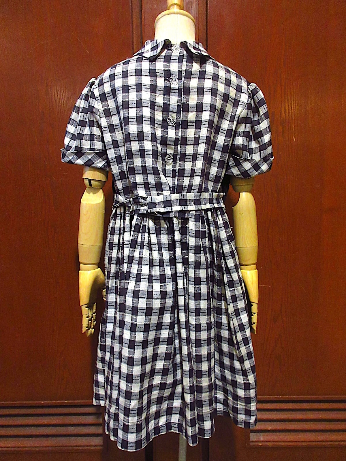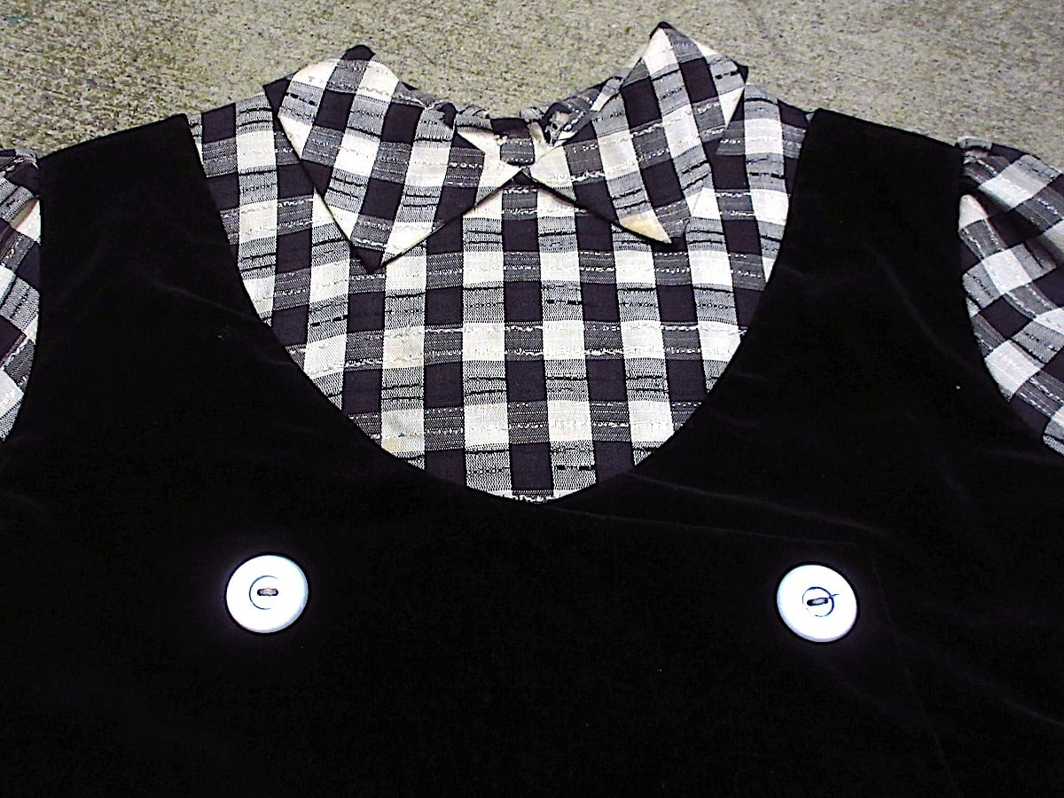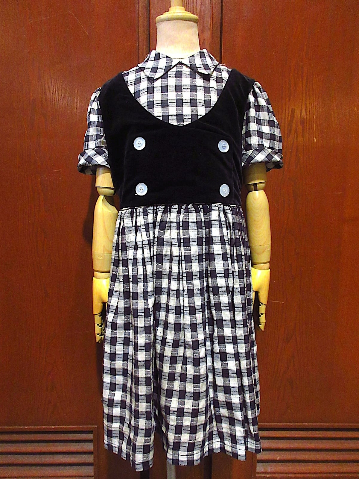 ビンテージ50's●キッズ襟付きチェックベロア切り替え半袖ワンピース●260329n2-k-drsブラックダブルブレストドレス子ども服