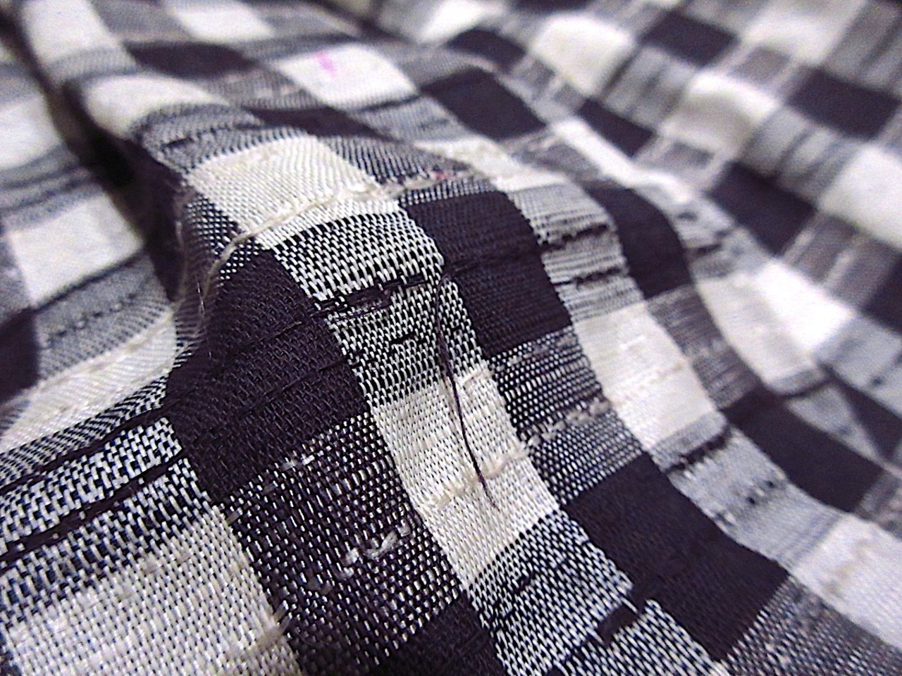 背中部分にボタン×4、フロントボタンダミー×4、ウエストコード付き、裏地付き