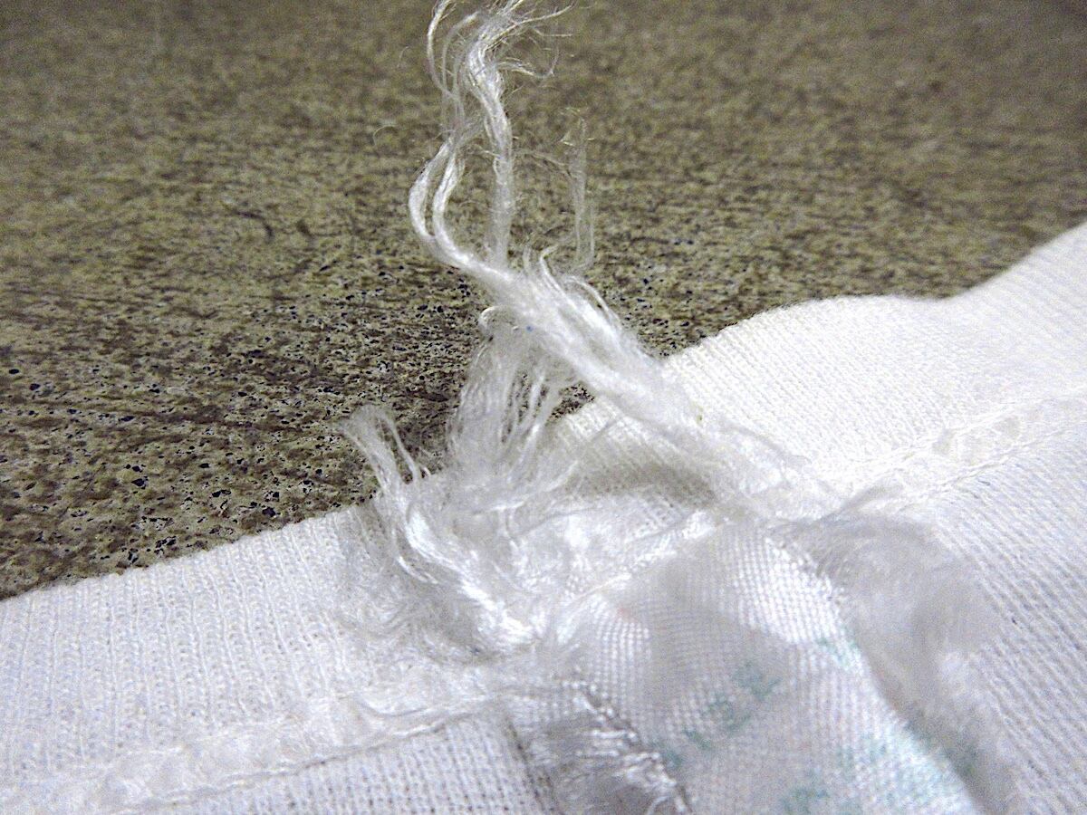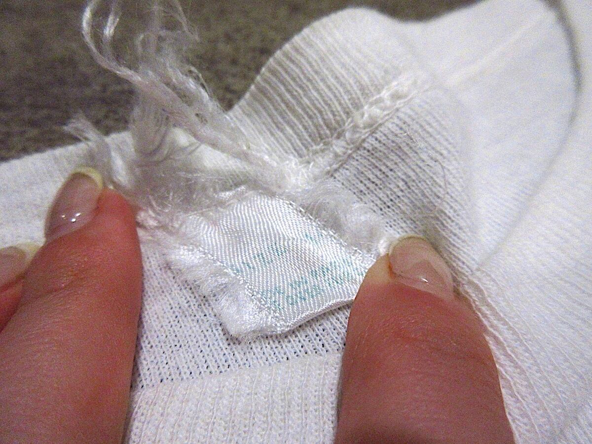 表記スレにより読み取り不可、生地に伸び、背中に汚れ、タグにほつれ、所々にピリング