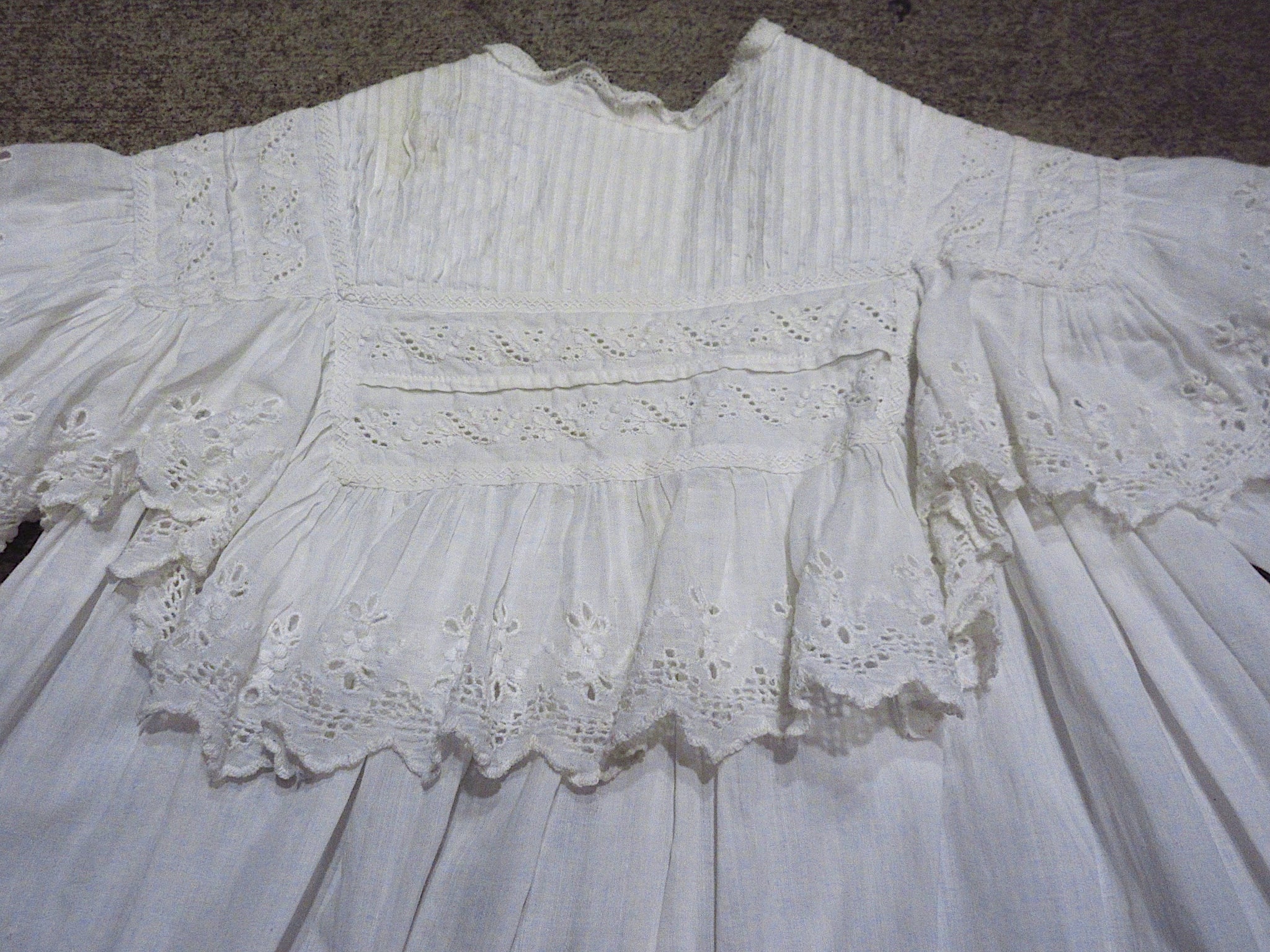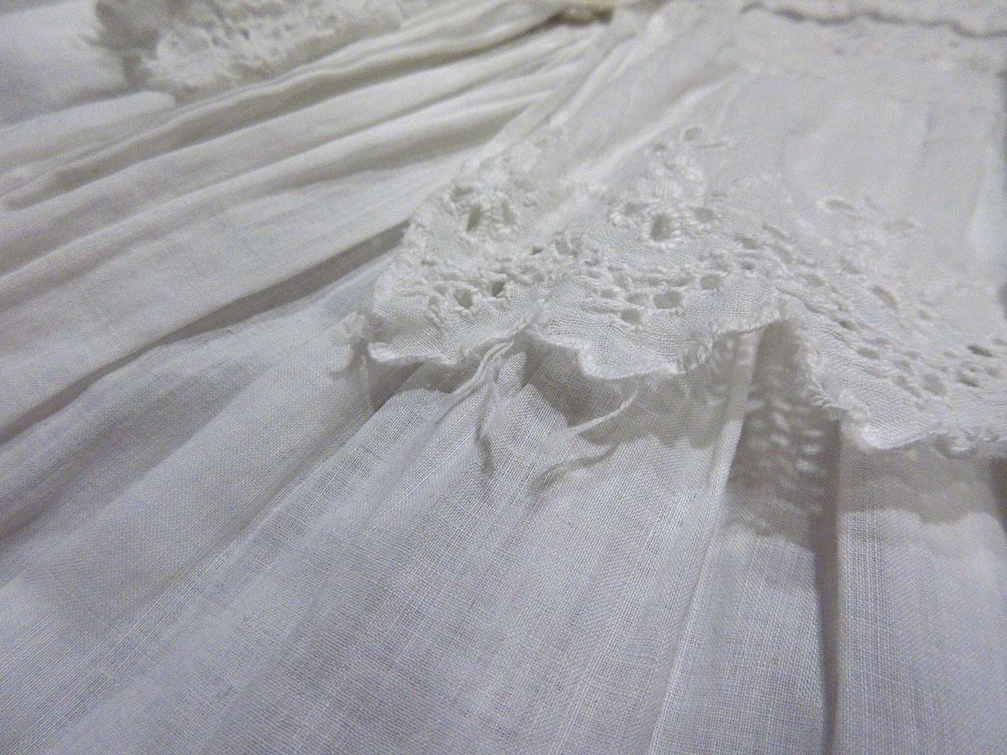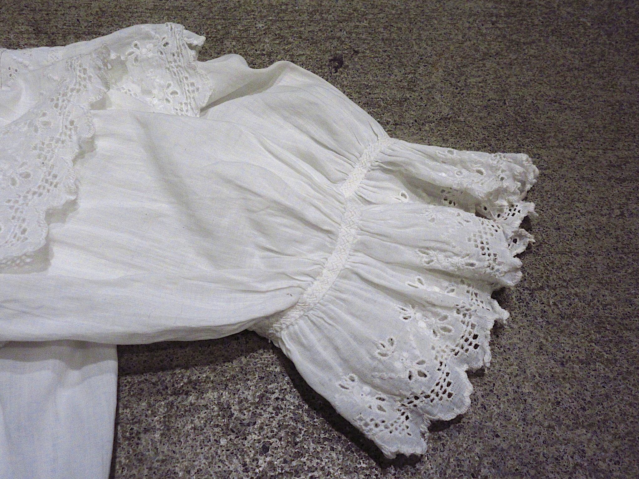 ~1910's キッズ レース×ギャザー入り 長袖ワンピース 白