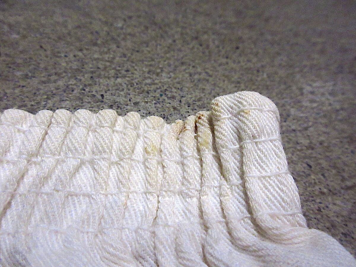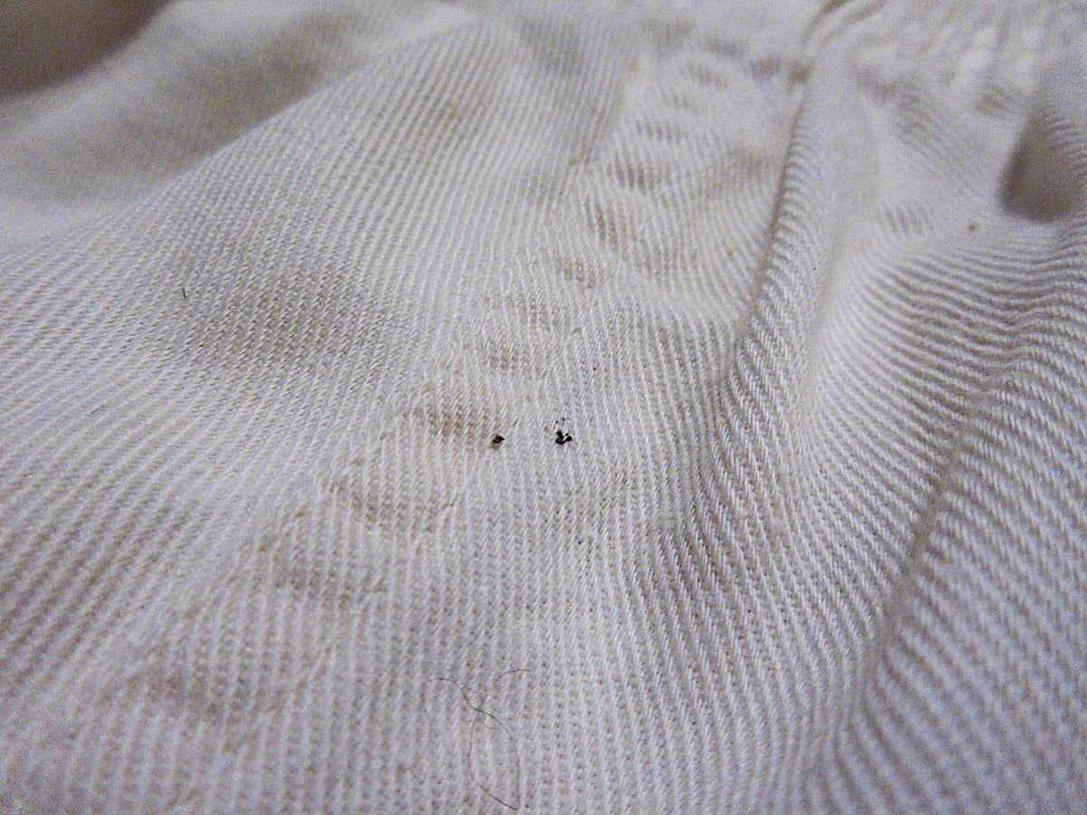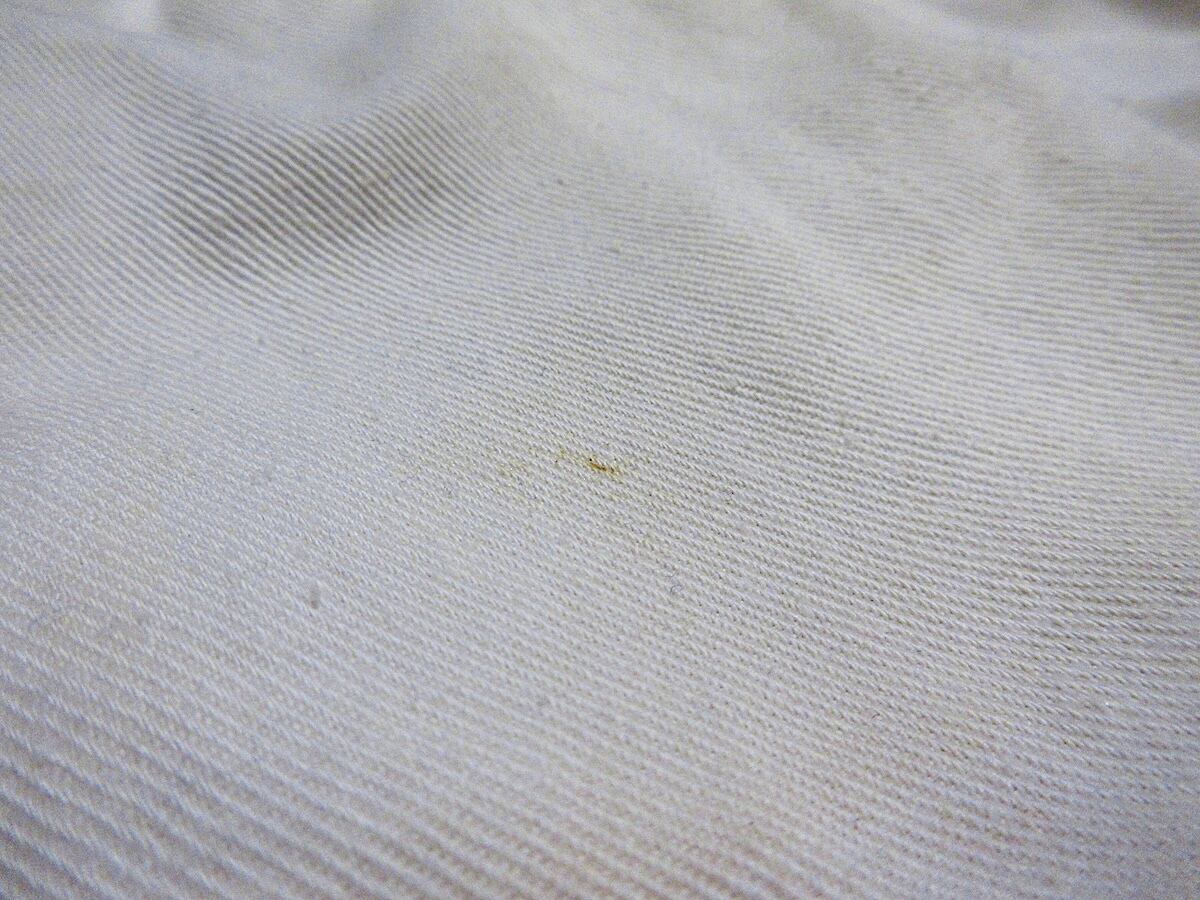 プリント付近に文字の書き込み、所々に汚れ、毛羽立ち
