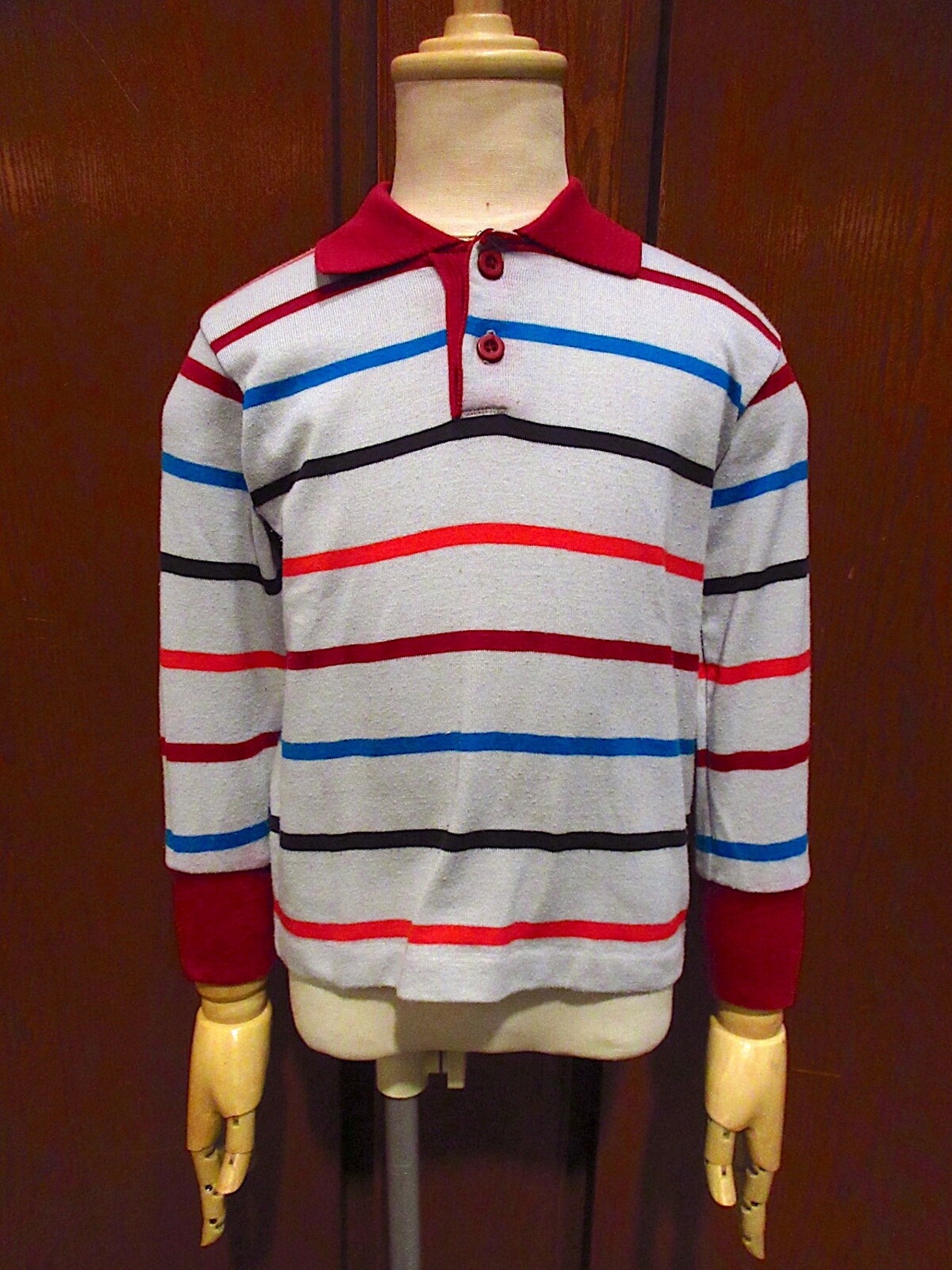 ビンテージ70's80's●Health-texキッズマルチボーダー長袖ポロシャツsize 5●221219c2-k-plsh 1970s1980s子供服トップス古着