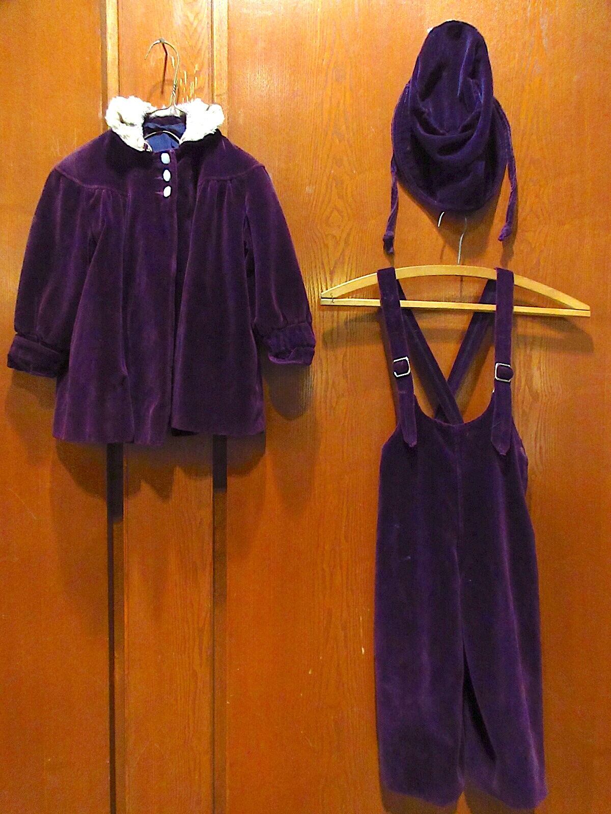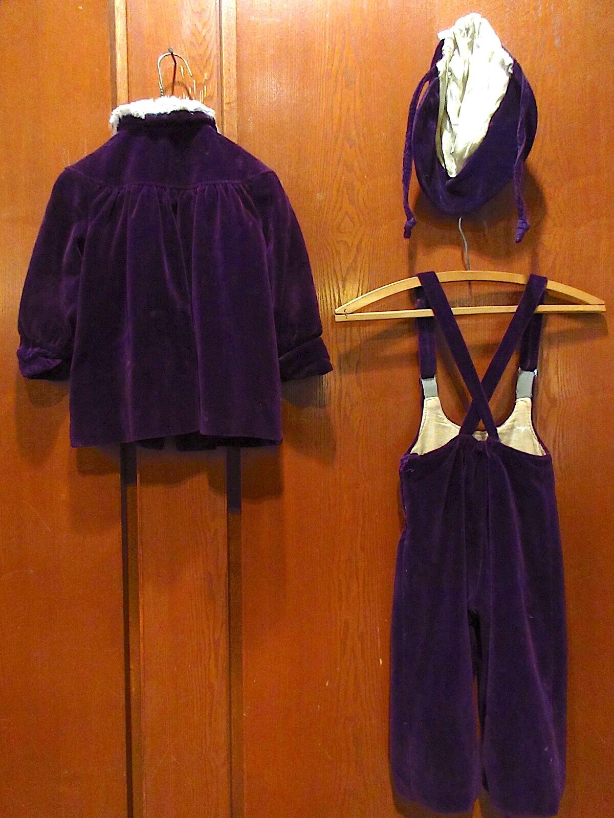 ビンテージ40's●Youksterキッズベロアコート&スノーパンツ&帽子紫スリーピース●221118c3-k-stup 1940sセットアップ子供服