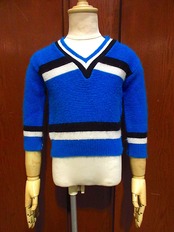 ビンテージ70's●キッズライン入りVネックニットセーター水色●221115c1-k-swr 1970s子供服トップス長袖