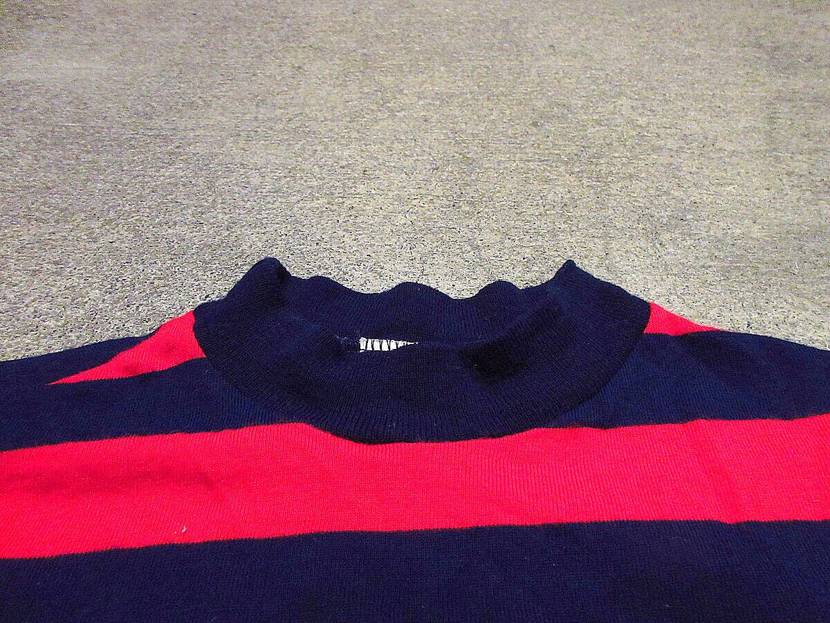 ビンテージ70’s●SearsボーイズワイドボーダーモックネックアクリルTシャツ赤×紺size 12●220729s5-k-tsh 1970sシアーズ古着メンズ