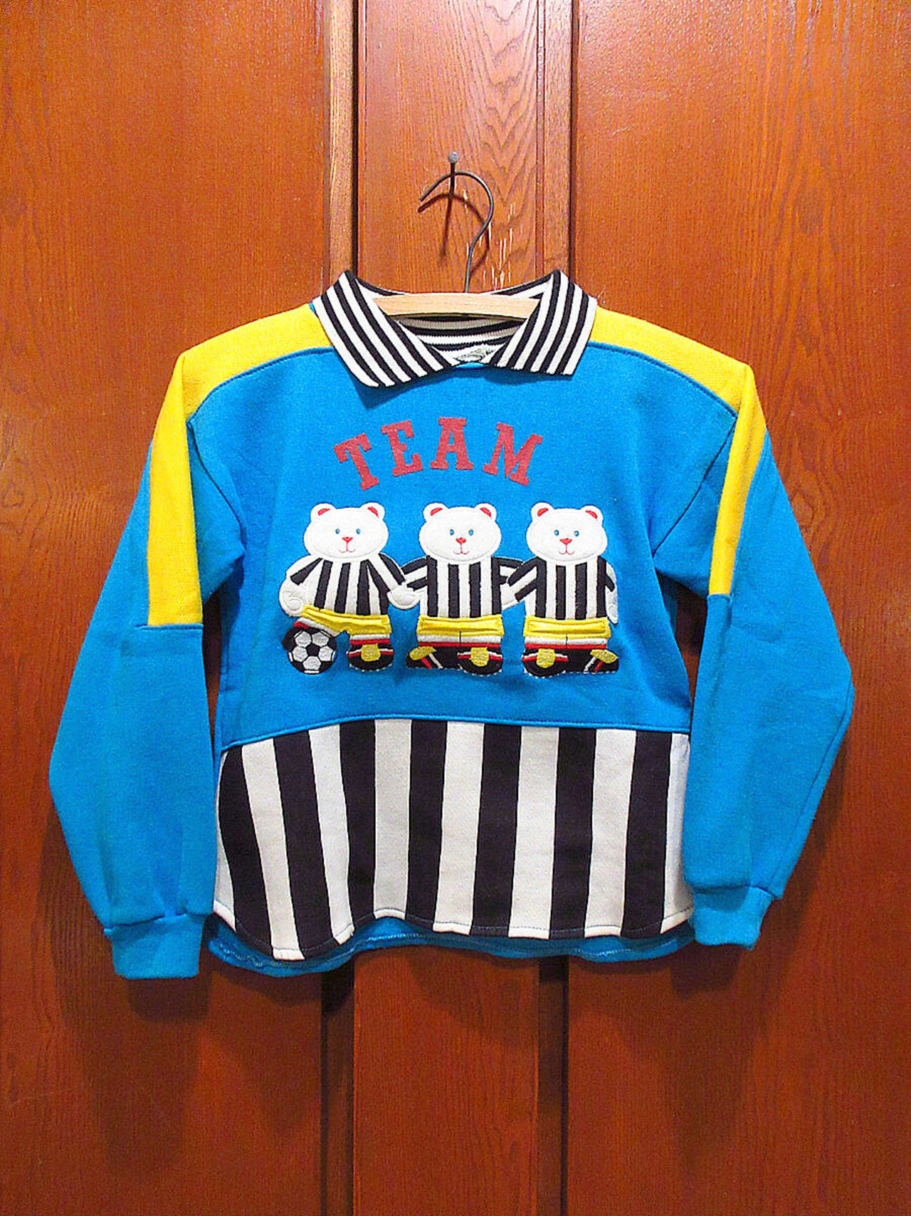ビンテージ90's●DEADSTOCK DAZZLEキッズ襟付きベア×サッカー刺繍スウェット6●220606i2-k-sws 1990sデッドストックトレーナー