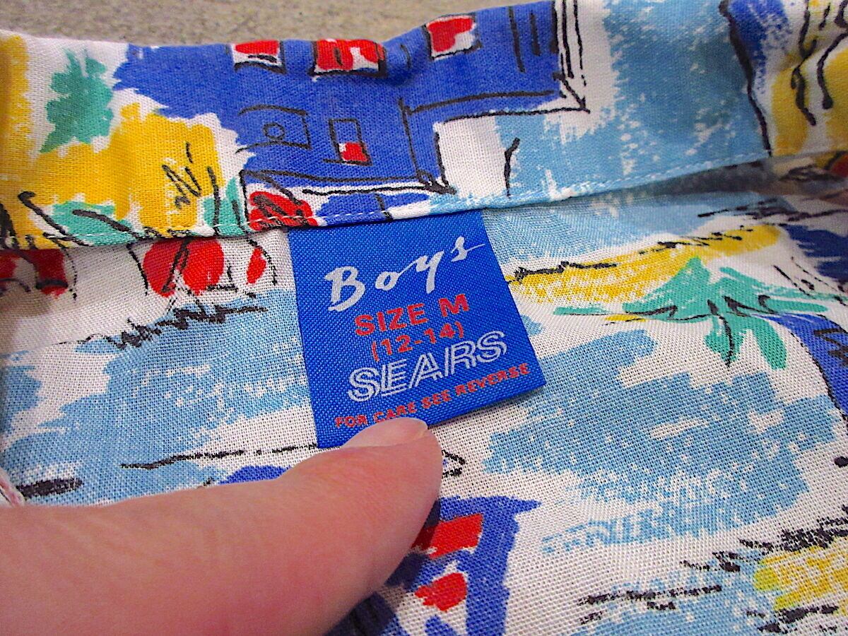 良い雰囲気のあるSEARSボーイズ総柄ハワイアンシャツです。
