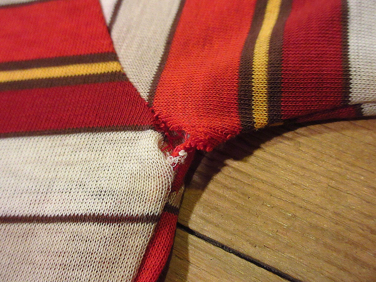 首リブに約1cm程と約4cm程のステッチのほつれがあります。