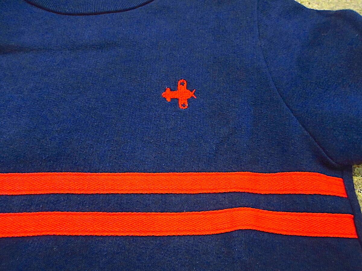 MADE IN USA、フロント中央・左袖にライン入り、左胸に飛行機モチーフのワンポイント