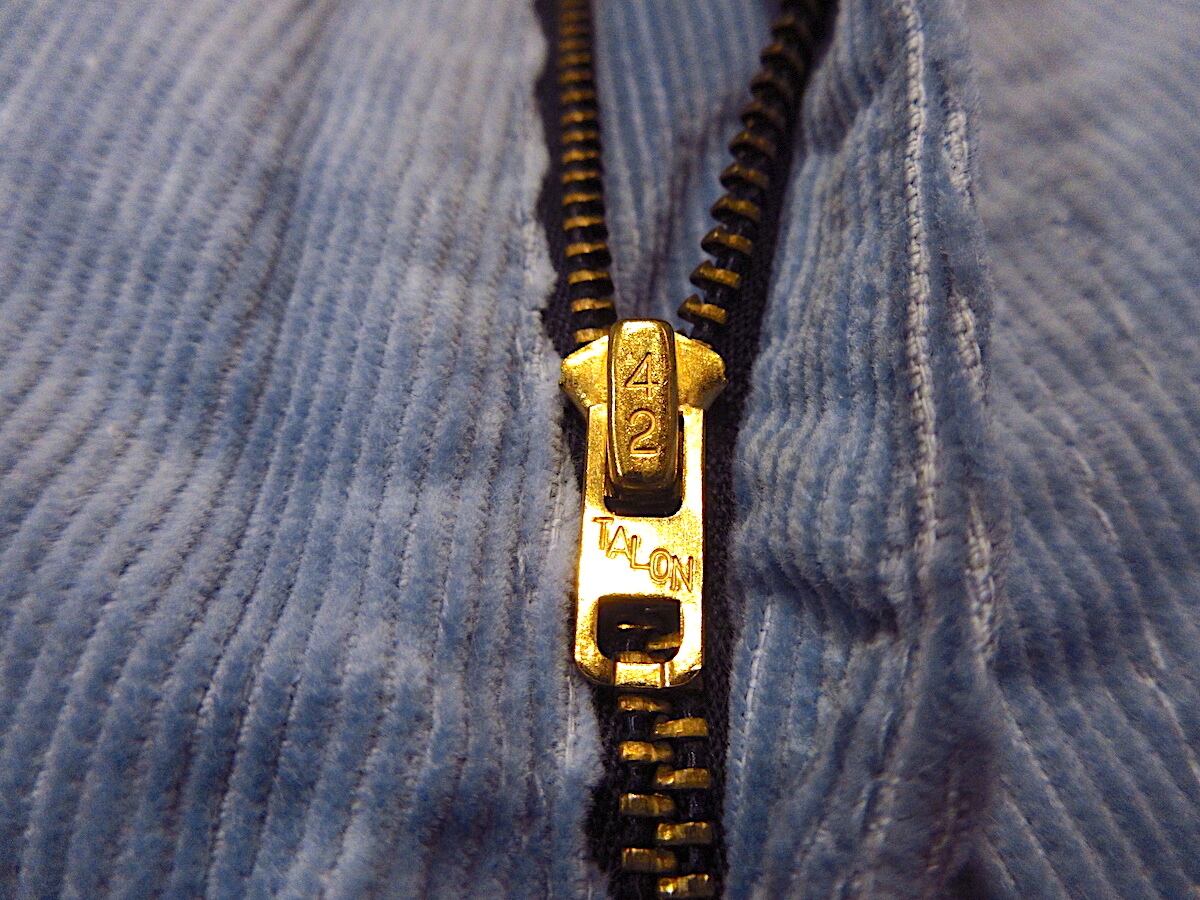 MADE IN U.S.A、タブはスモールe、シルエットはフレア、ジッパーは42TALON、トップボタン裏の刻印22