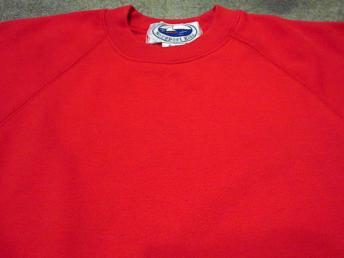 1990's Norsport Kids キッズ 裏起毛ラグランスウェット 赤 size S(4)