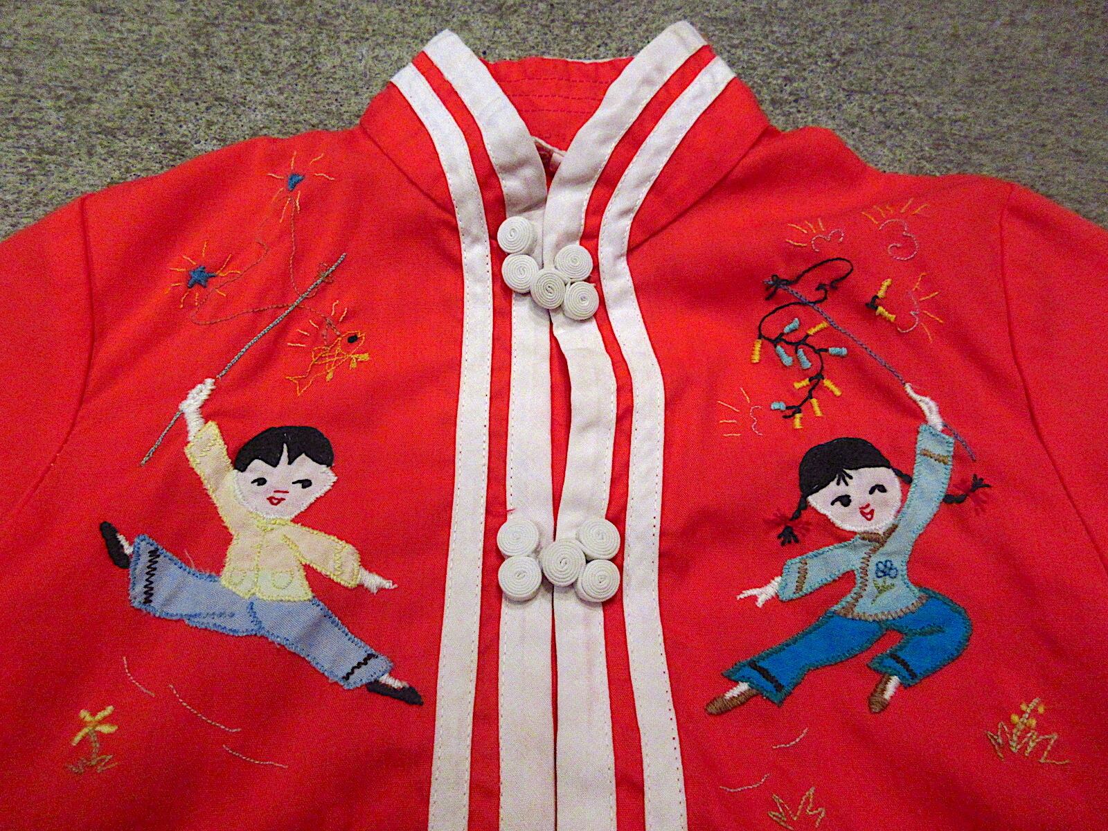 1970's Plum Blossoms キッズ 刺繍入り チャイナシャツ size 2