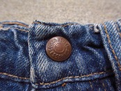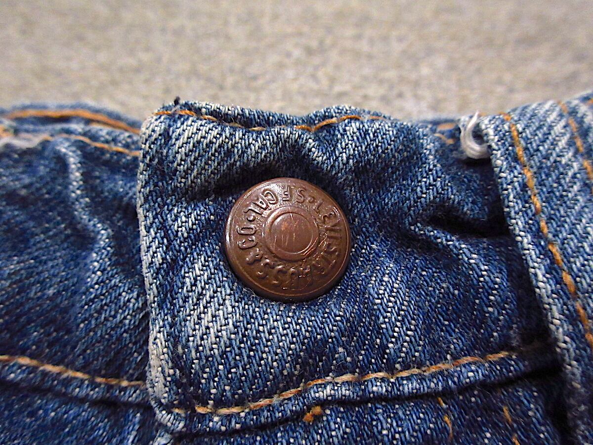 トップボタン裏の刻印おそらく「69M」、ジッパーは42 TALON、ポケット計4つ、オレンジタブビッグE、チェーンステッチ、シルエットはフレア