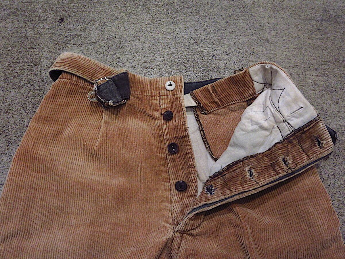 ポケット3つ、ボタンフライ、金具やゴムで多少のウエスト調整可能