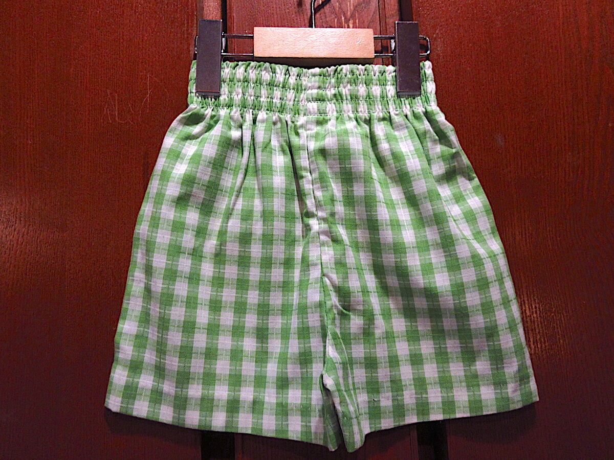 1970's キッズ チェック柄 ショーツ 緑×白 実寸W40cm~60cm