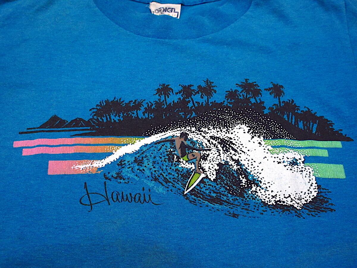ビンテージ80's●キッズHawaiiサーフプリントTシャツ水色size L(14-16)●230731c4-k-tsh 1980s子供服トップス古着半袖
