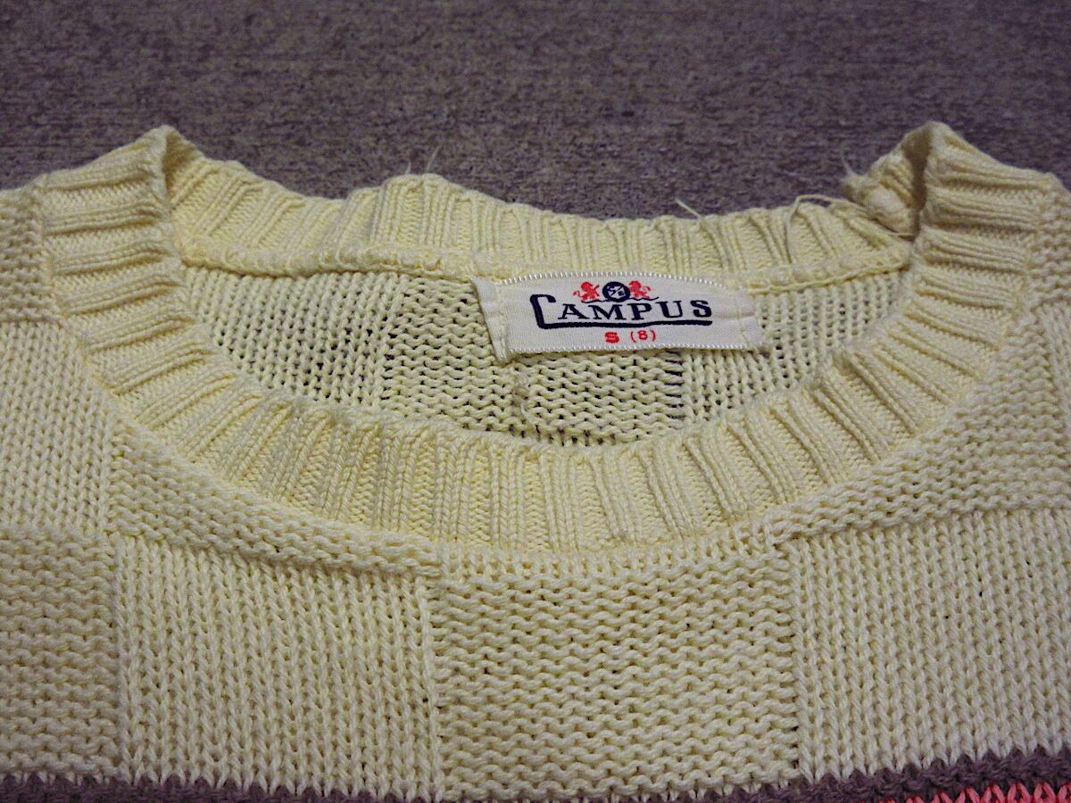 ビンテージ50's●CAMPUSキッズサマーニットボーダーTシャツ黄size S(8)●230828c1-k-tsh 1950s子供服半袖古着トップス