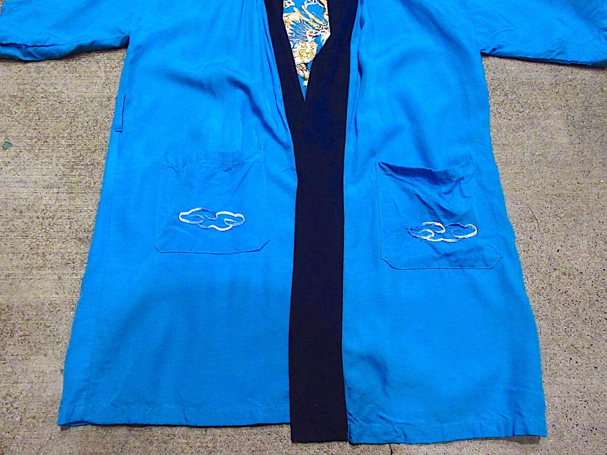 ビンテージ~70's●キッズドラゴン刺繍入り半袖ガウン水色size 10●230911c2-k-gwn 1970s子供服羽織法被古着