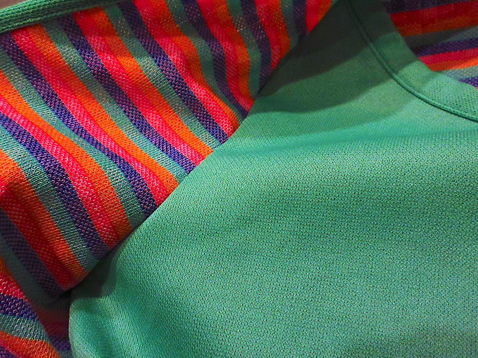 1970's キッズ レインボーチェック柄 パフスリーブ トップス