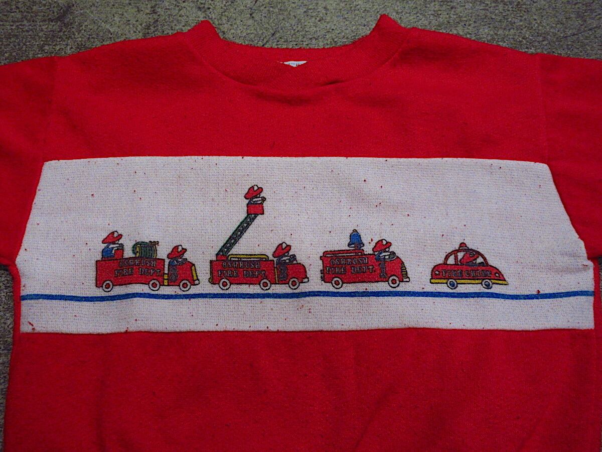 ビンテージ80's●OSHKOSH B'GOSHキッズFIRE DEPTプリント裏起毛スウェット赤●231011c4-k-sws 1980sオシュコシュトレーナー古着