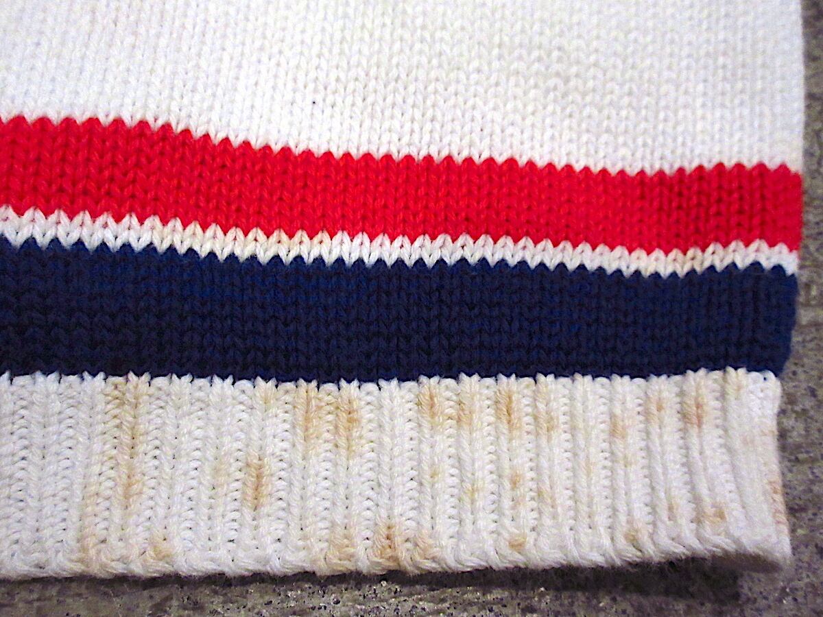 1970's キッズ ケーブル編み ライン入り ニット カーディガン 白