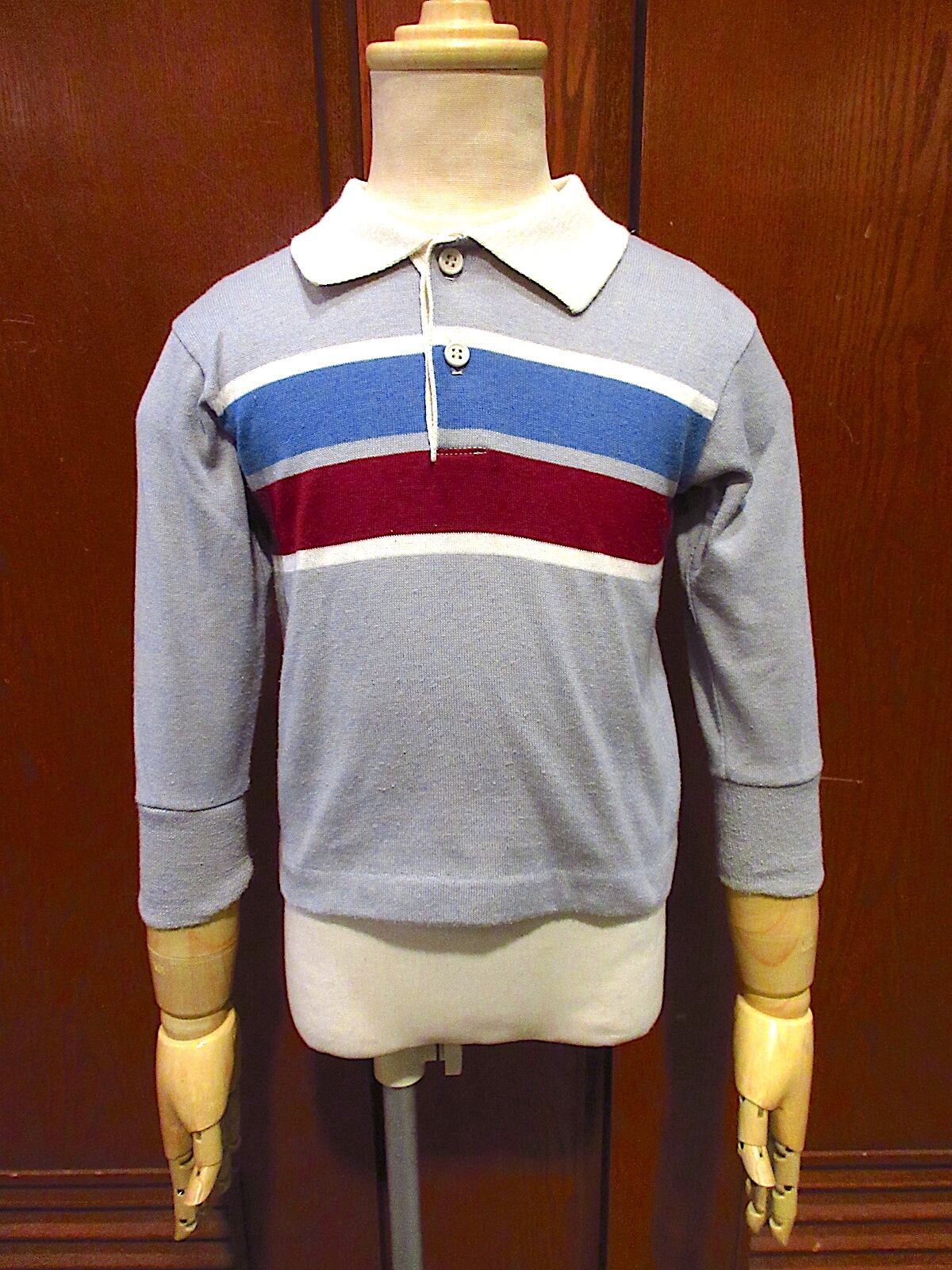 ビンテージ70's●Health-texキッズライン入り長袖ポロシャツグレーsize 3T●231018c5-k-plsh 1970s子供服長袖シャツボーダー