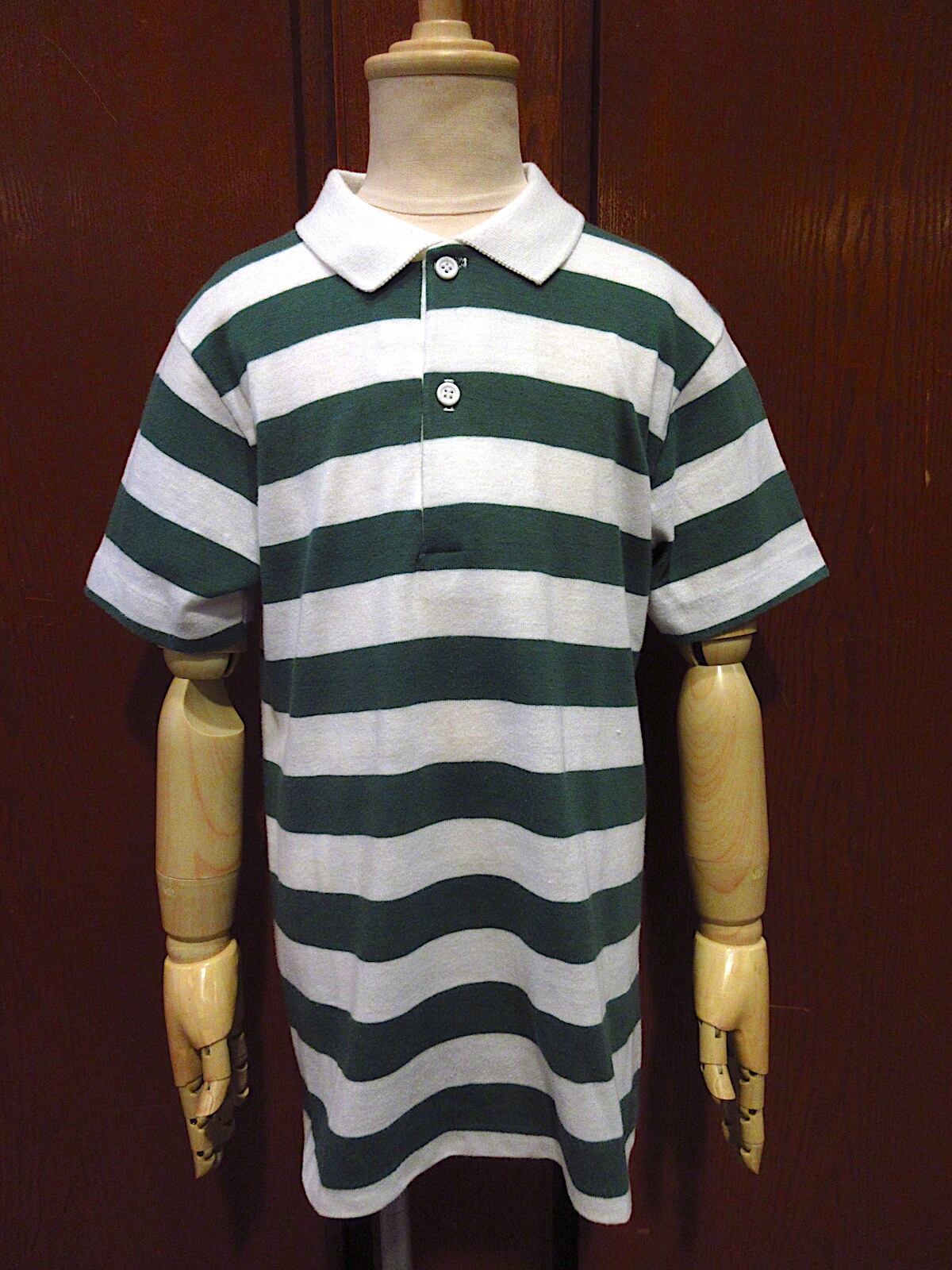 1970's~1980's キッズ ボーダー ポロシャツ 白×緑 size 12
