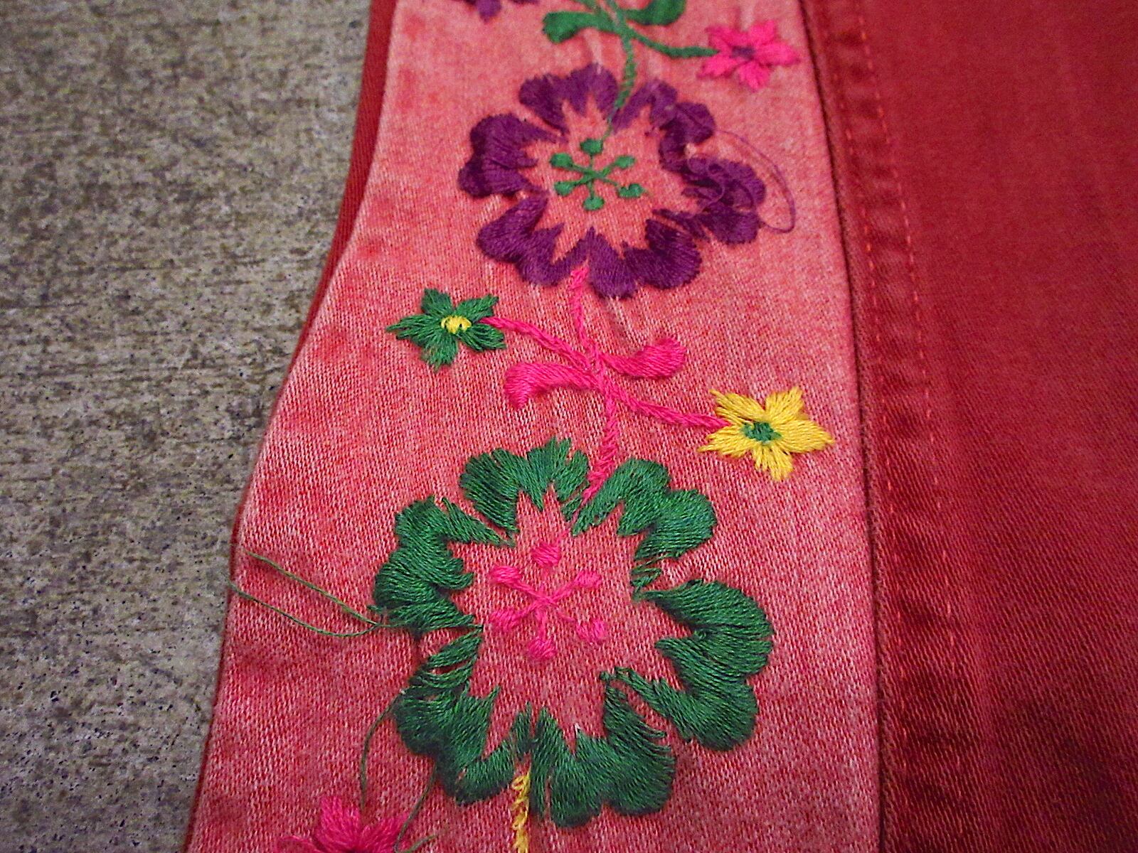 1970's GROWING GIRL キッズ 花刺繍入り フレアパンツ 茶 size 7