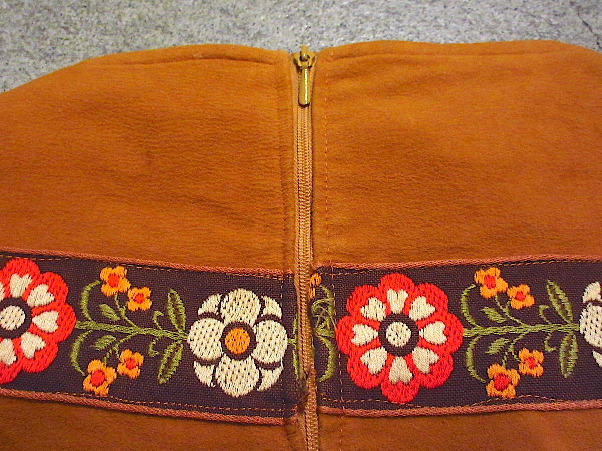 1970's キッズ 花刺繍 フリンジ付き ヒッピー チュニック 茶