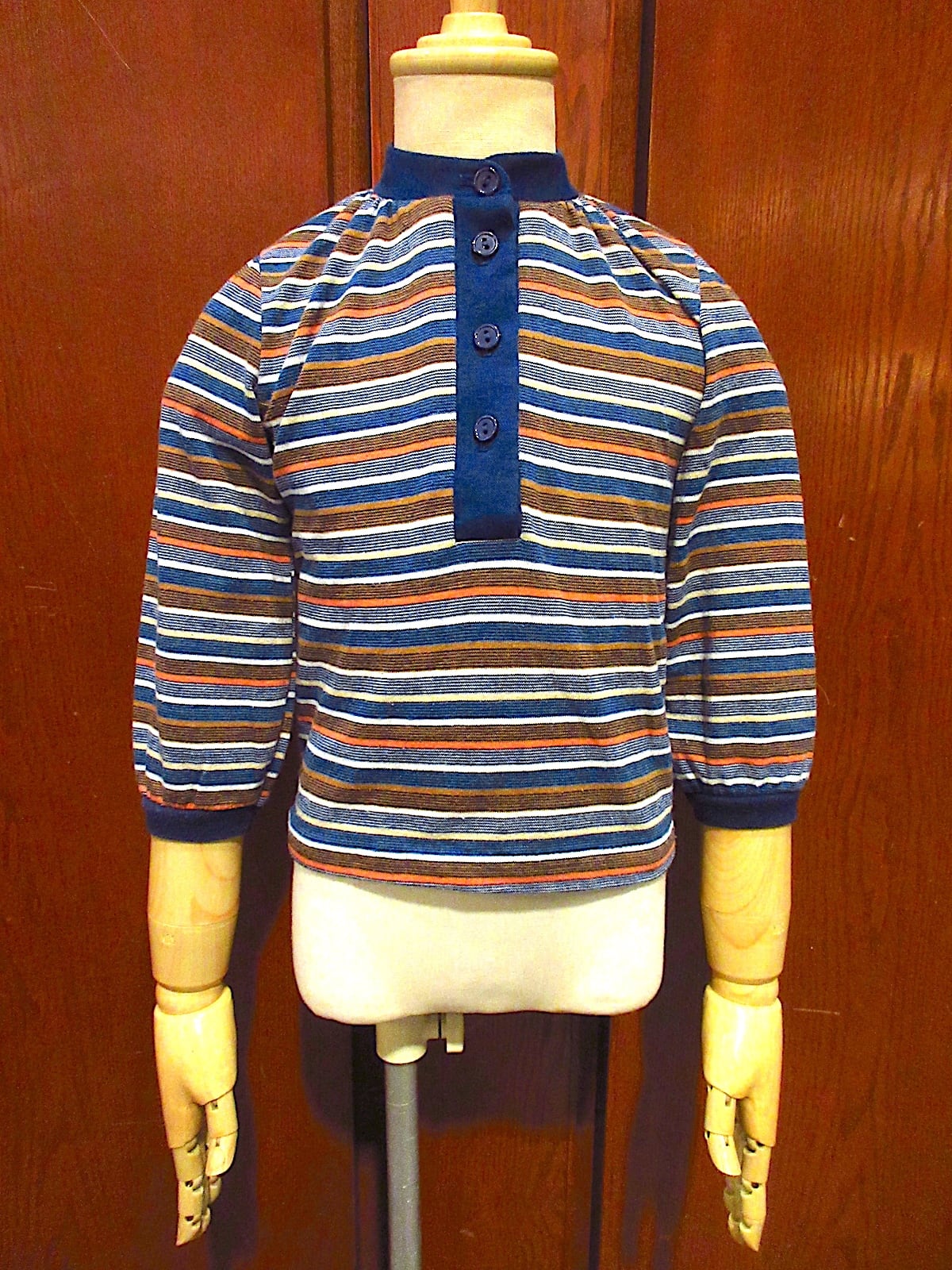 ビンテージ70's●キッズマルチボーダーヘンリーネック長袖Tシャツ●231211c5-k-lstsh 1970s子供服トップス古着