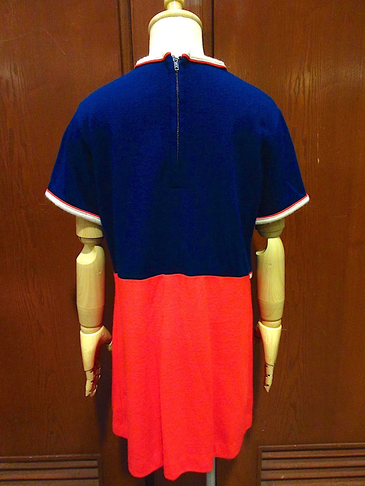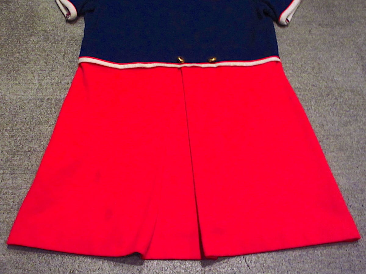 1960's~1970's キッズ リーフ刺繍入り ツートーン 半袖ワンっピース 紺×赤