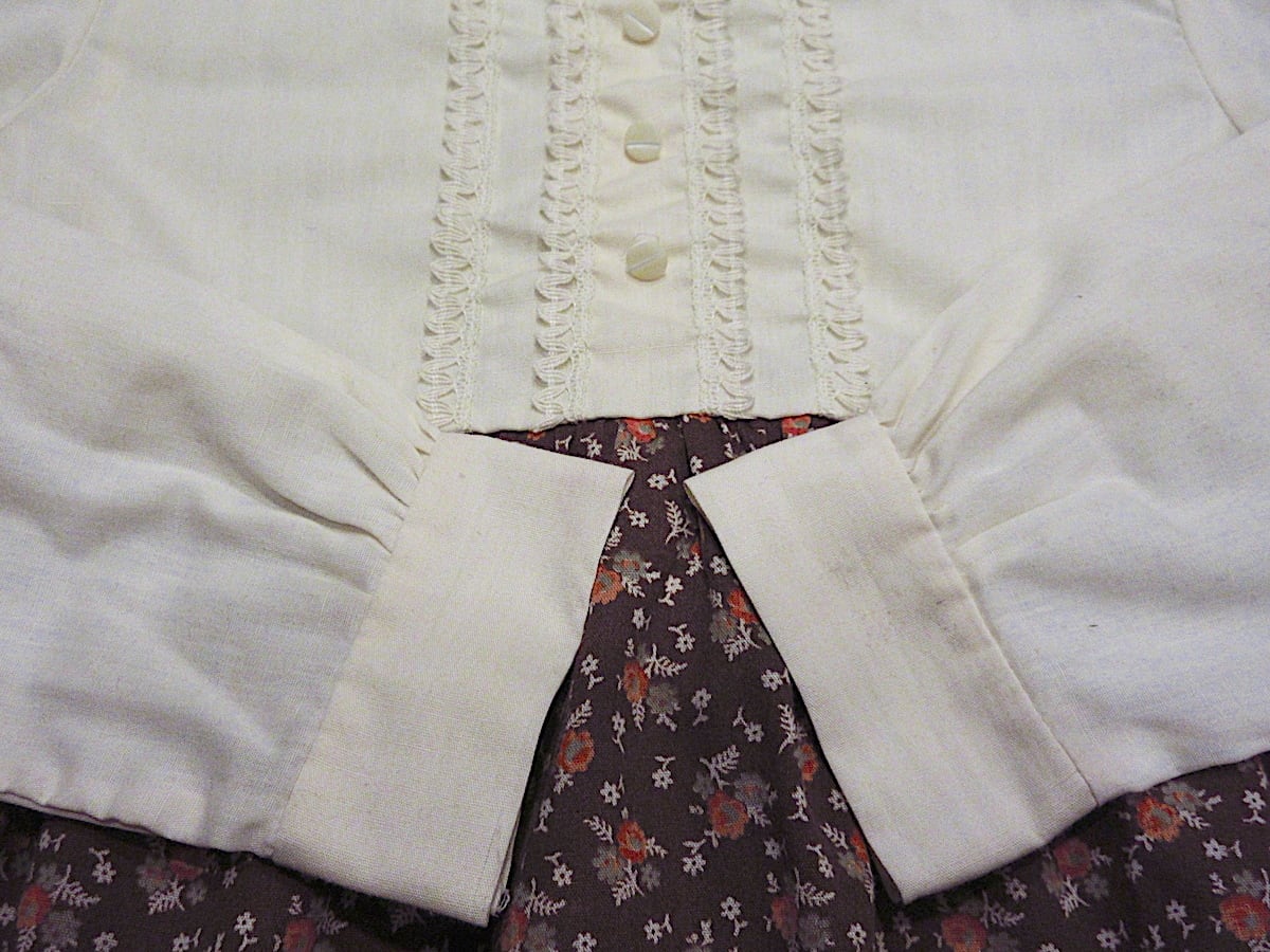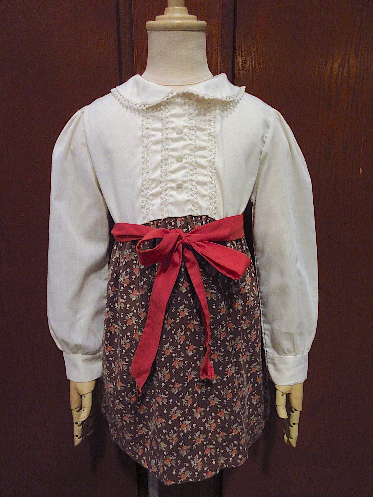 1970's キッズ 無地×花柄レース 長袖ワンピース