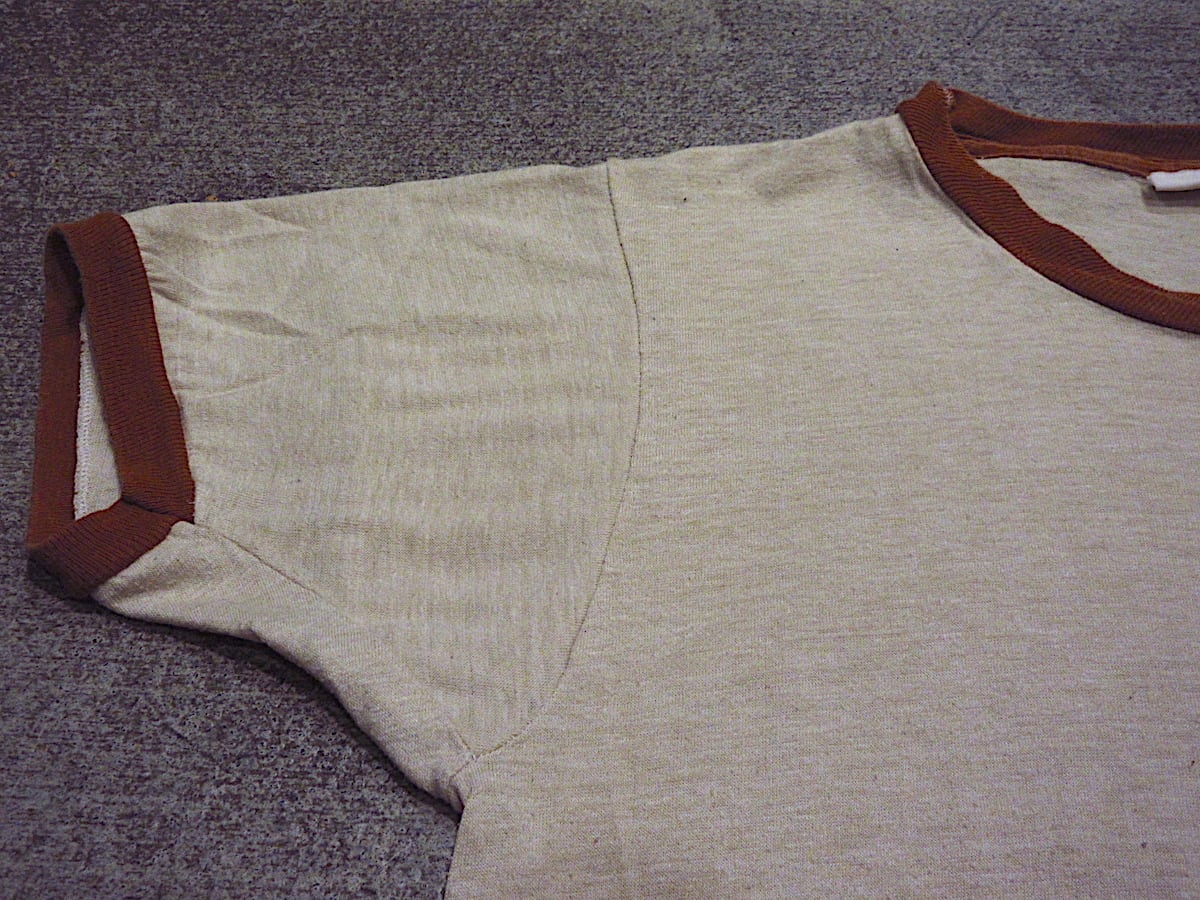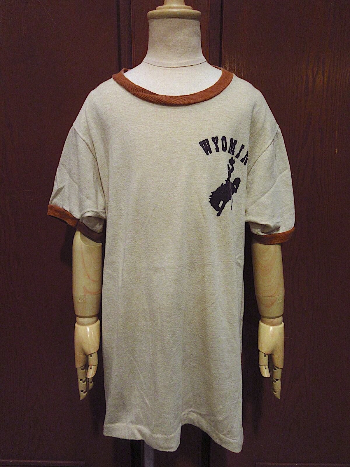 1970's キッズ WYOMING プリント リンガーTシャツ ベージュ×茶